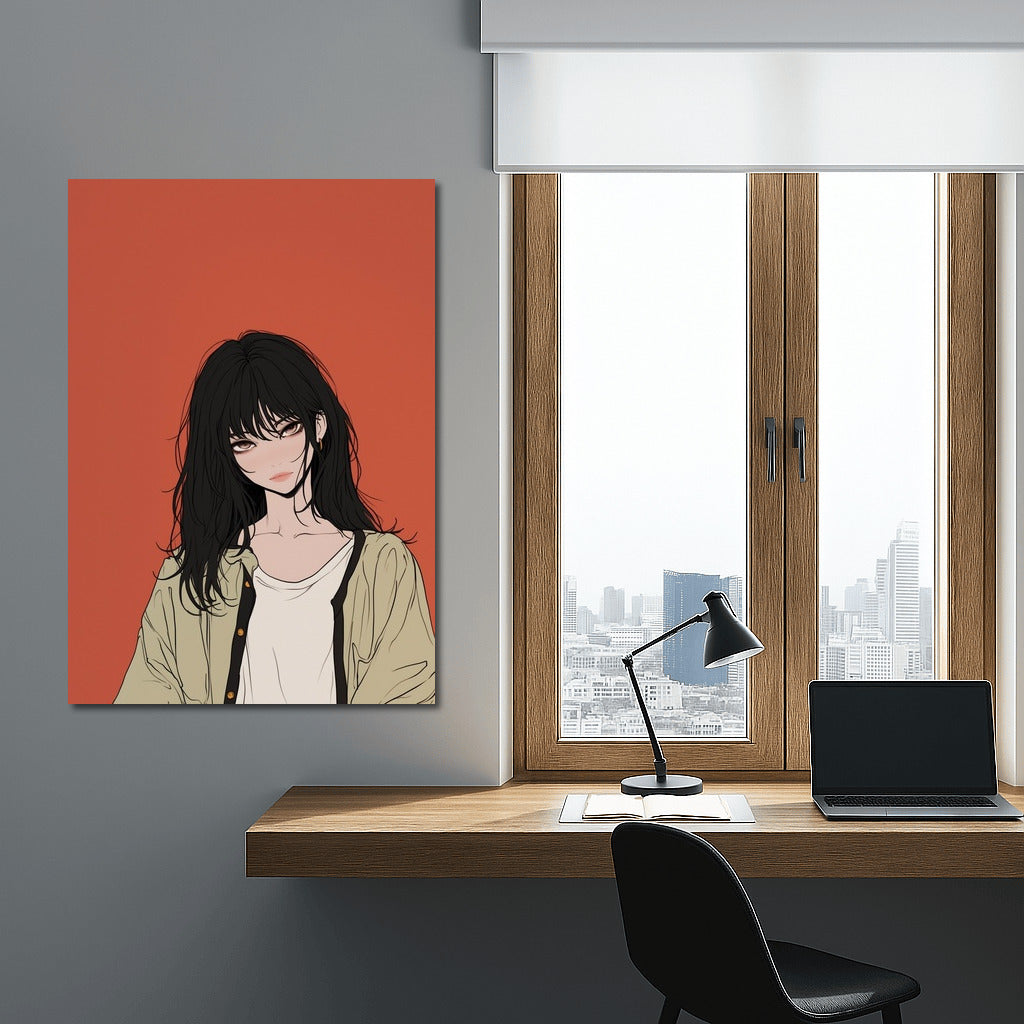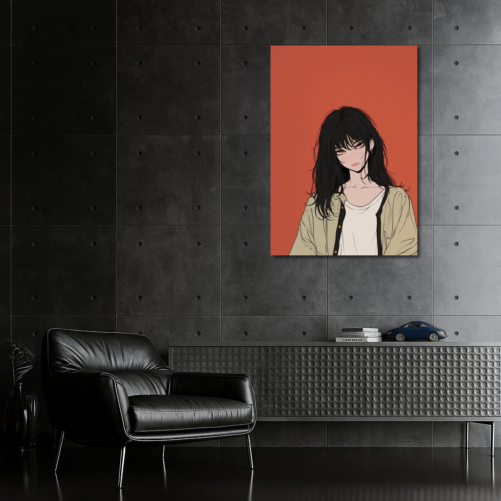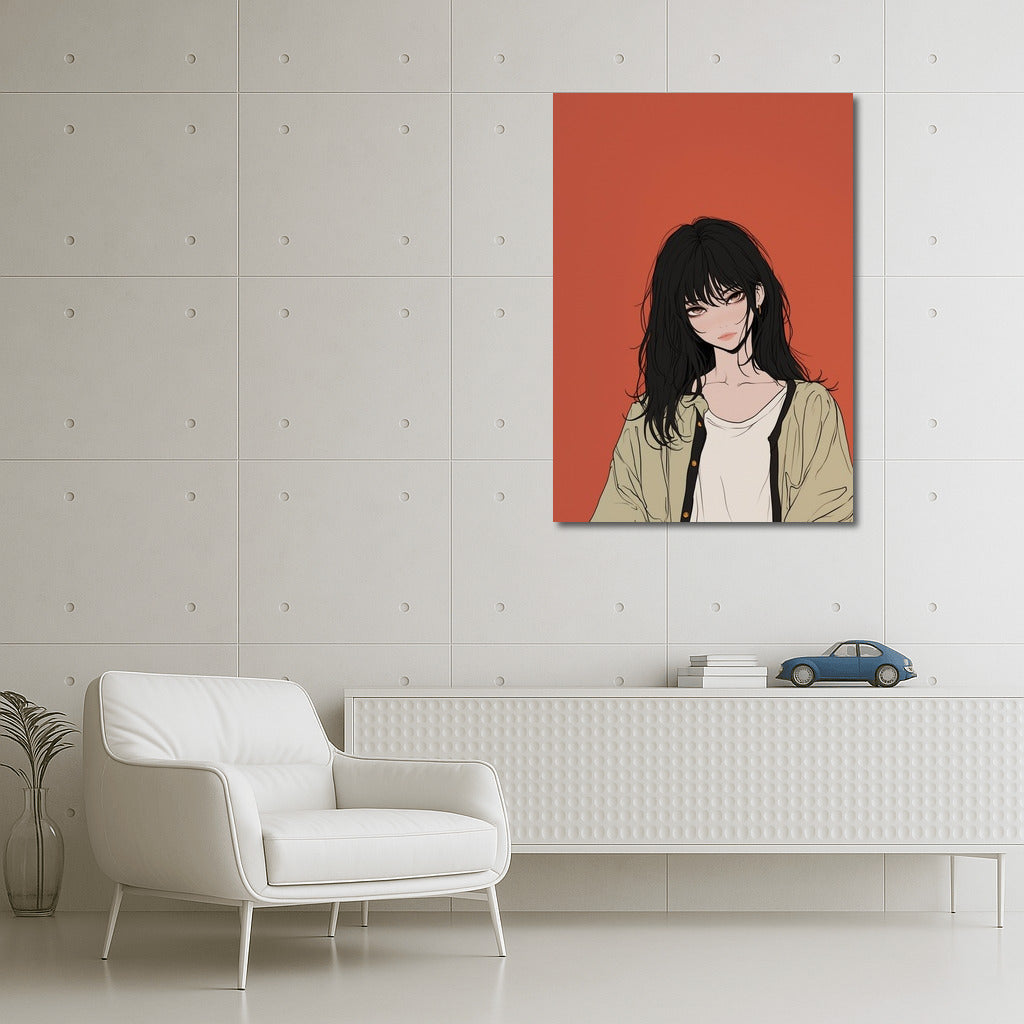 Emotional wall art: a mysterious figure on a deep terracotta background. Abstract charm in every stroke! See more from the collection: Anime & Manga genres Art