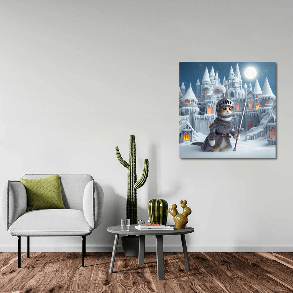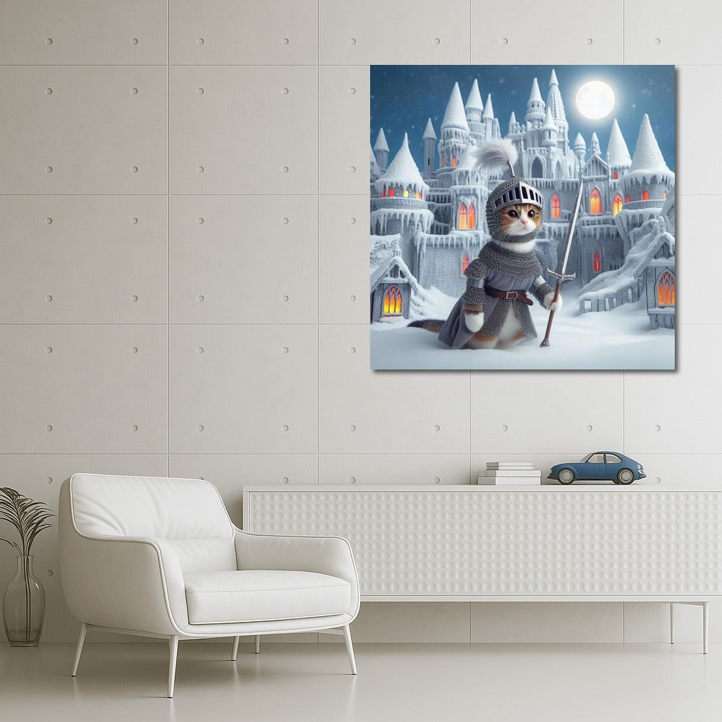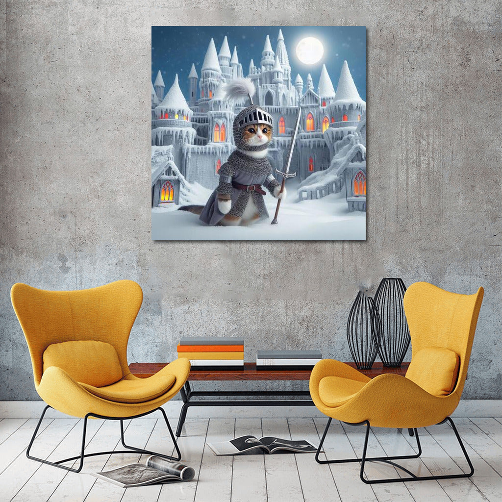 The Cat Knight of Westeros: Defender of the Snow Castle Wall Art