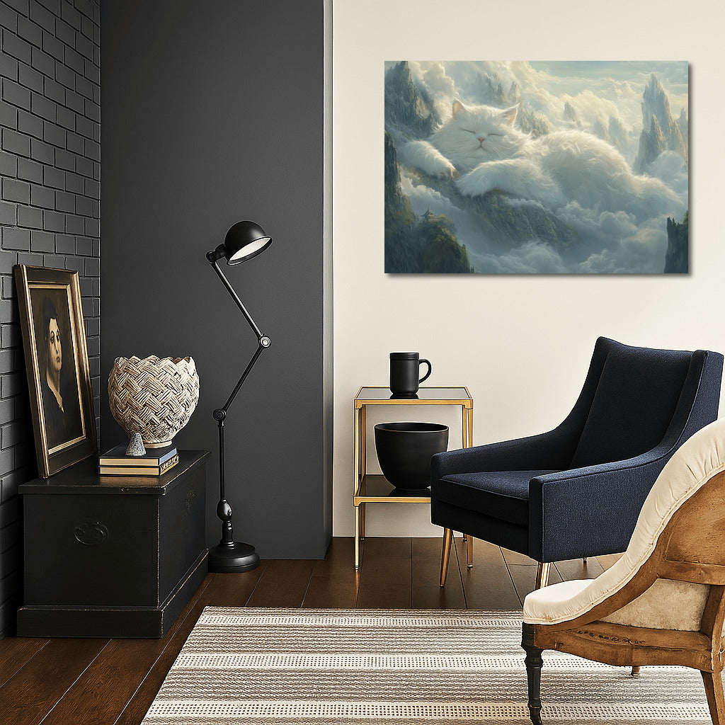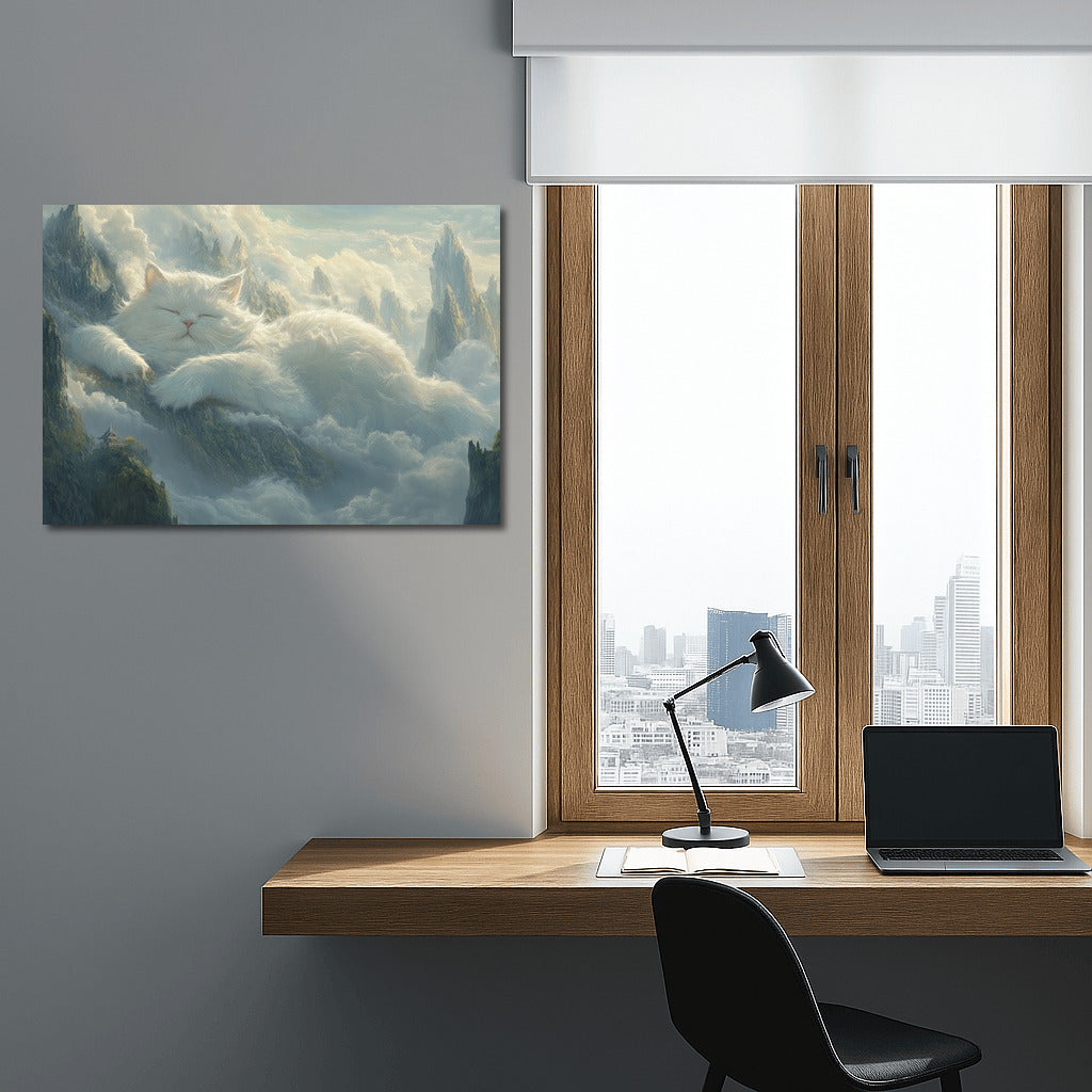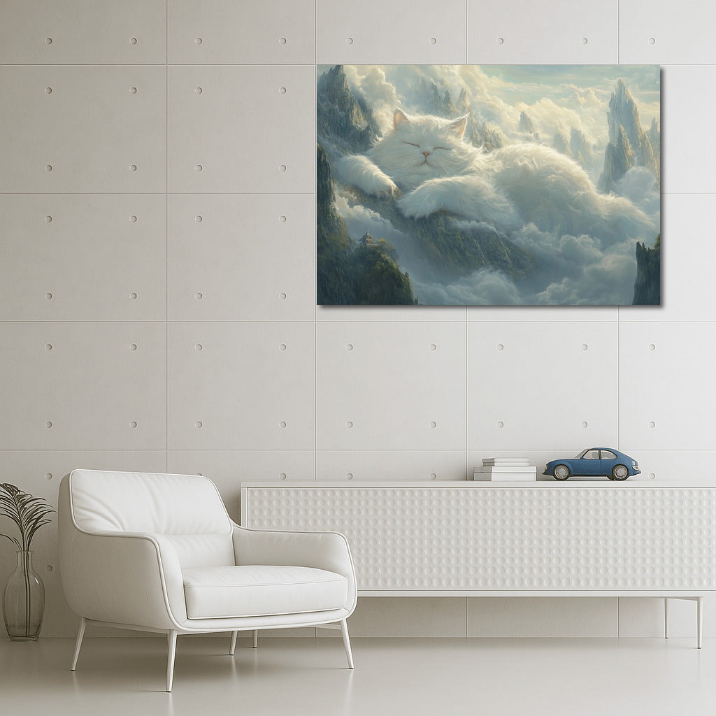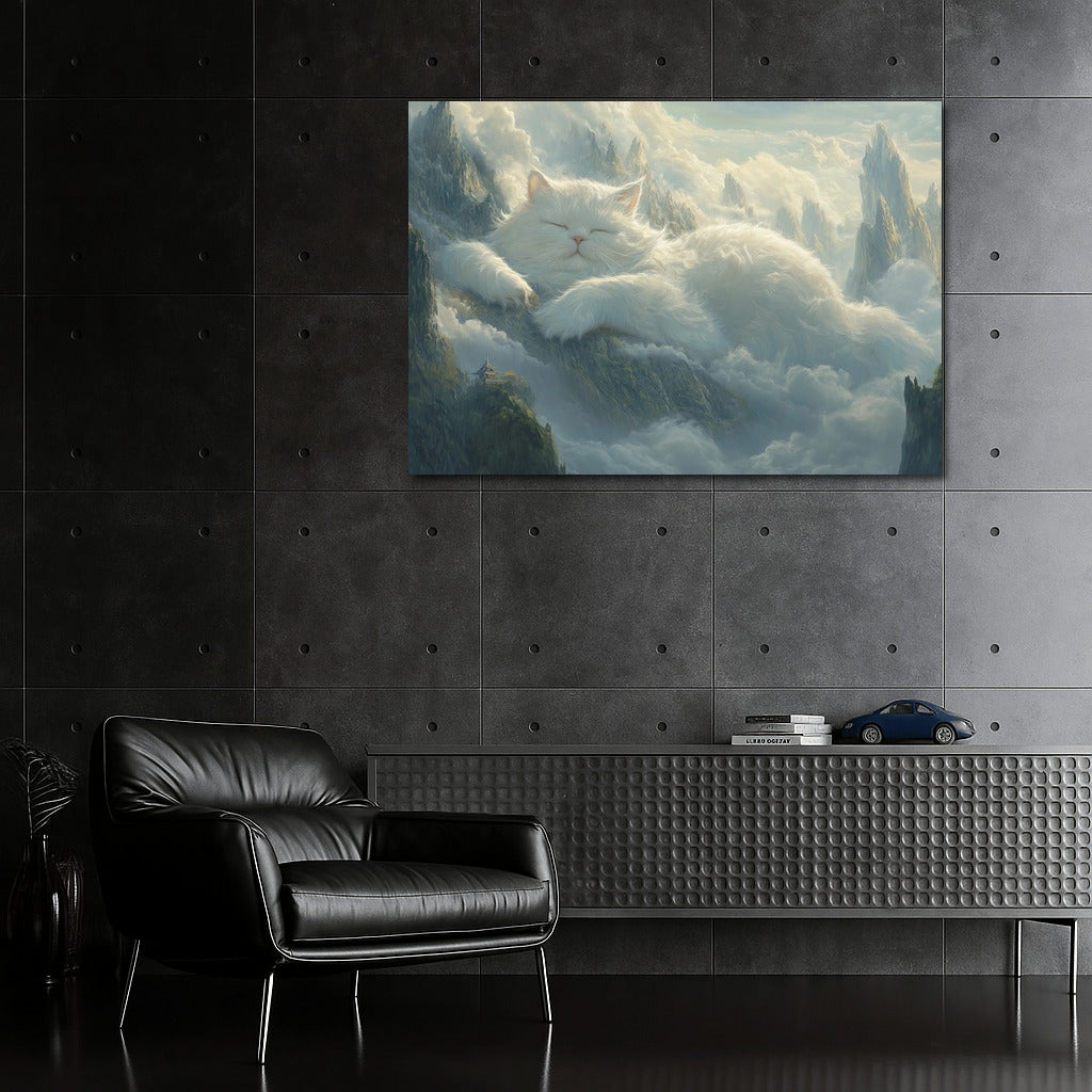 Dive into your dreams with this magical poster: a fluffy cat conquers the cloudy peaks, creating an atmosphere of calm and fairy tale. See more from the collection: Animals Art