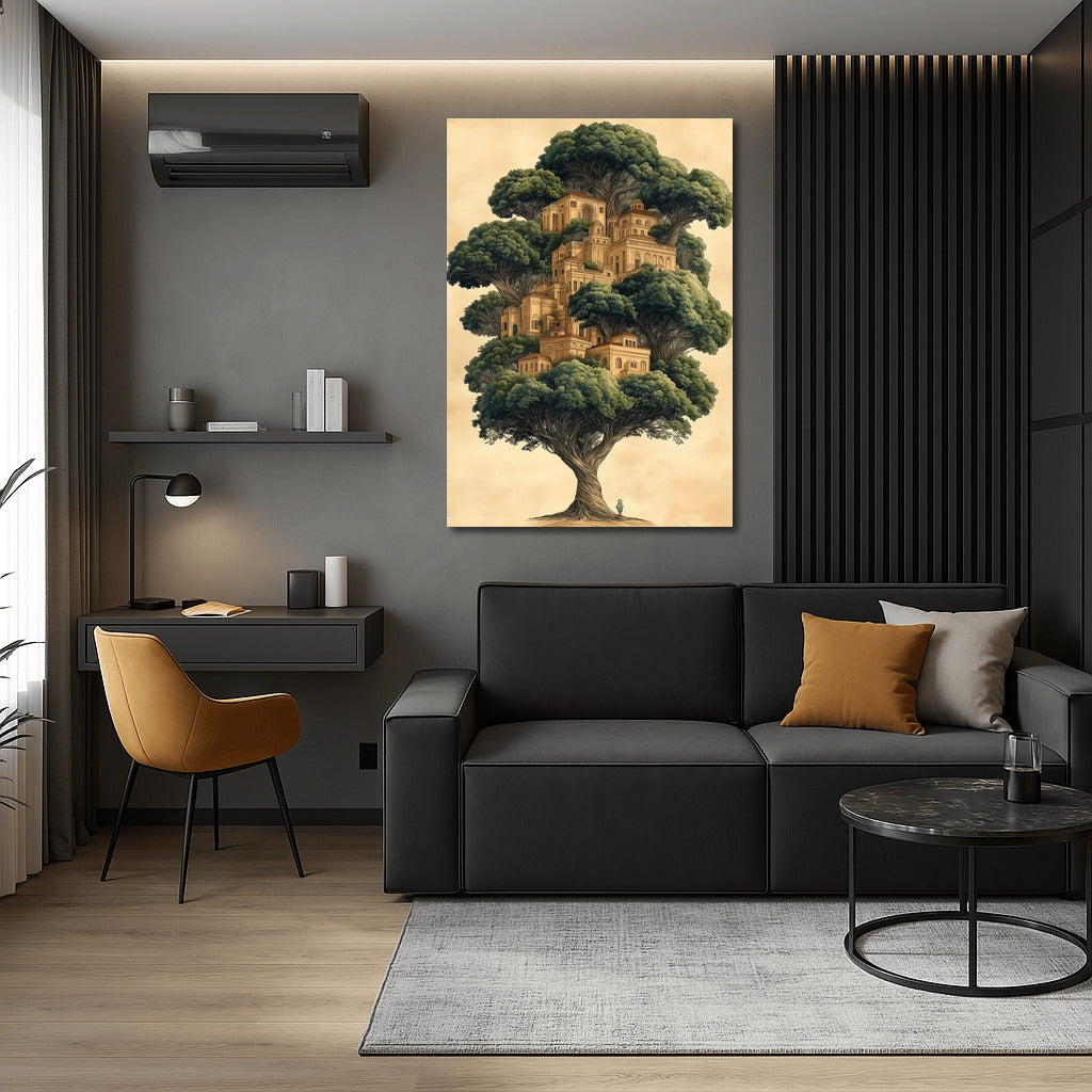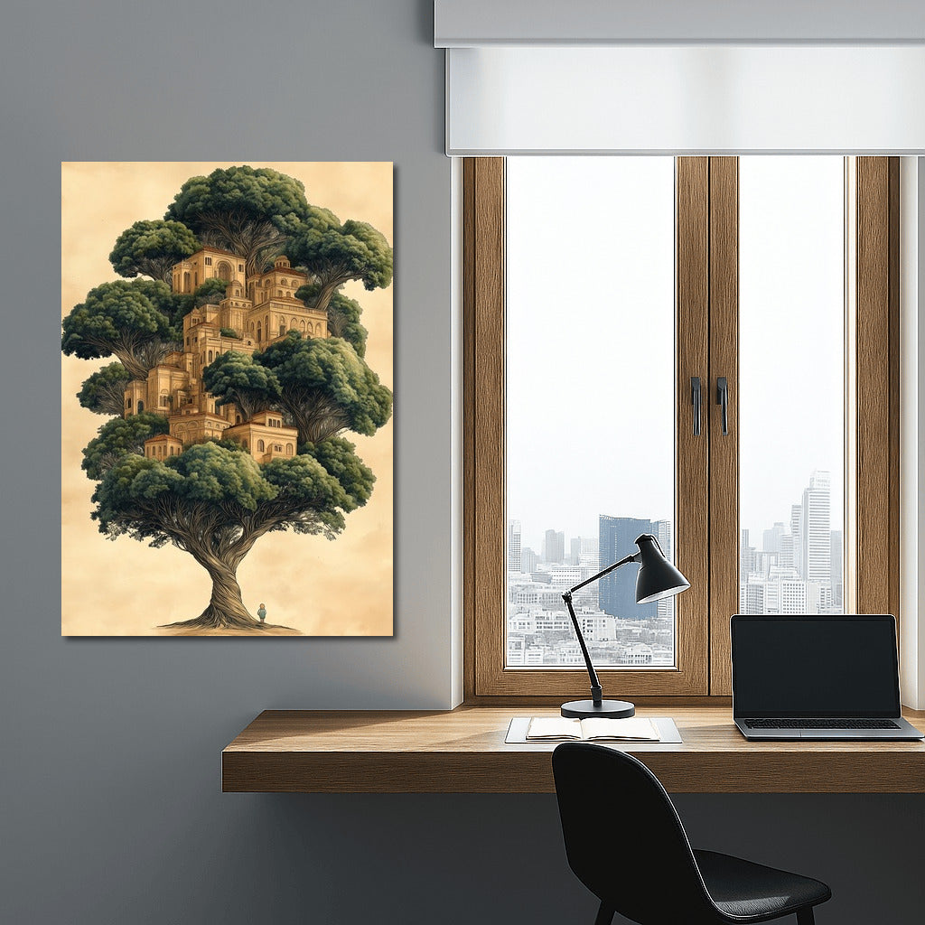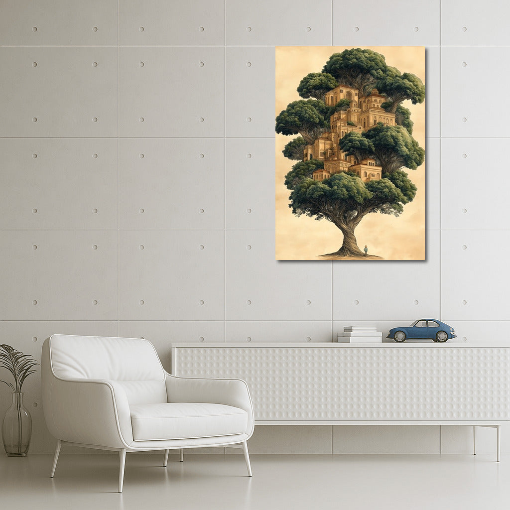 City in the Treetops is a stunning poster where fantasy comes to life, inviting you into a world of dreams and secrets. Wall art for dreamers! See more from the collection: Mixed Wall Art