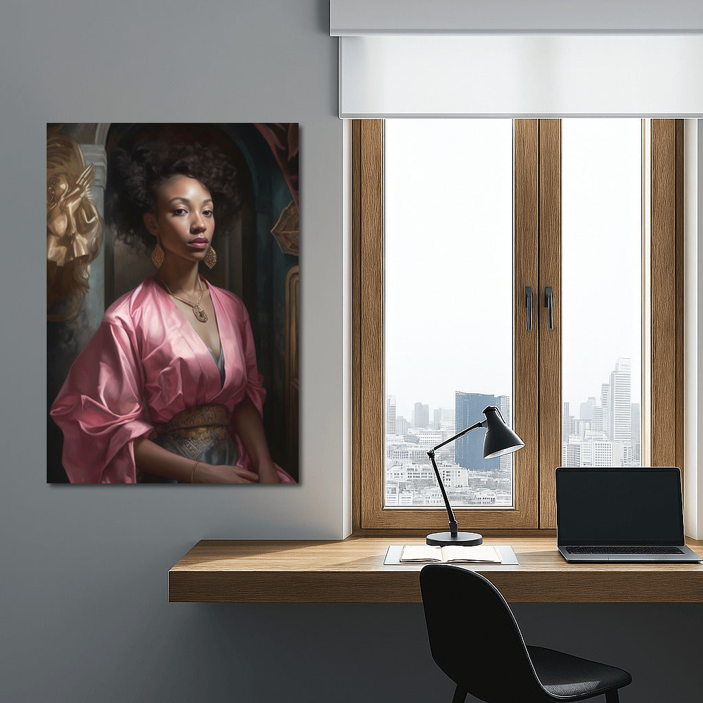 The Charm of Pink Elegance: Dark Skinned Beauty Wall Art