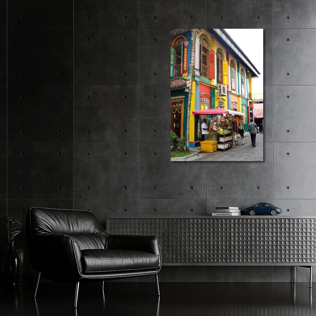The vibrant painting captures the charm of Singapore with its colorful buildings and street atmosphere. The wall art will bring life to your interior. See more from the collection: Country Art