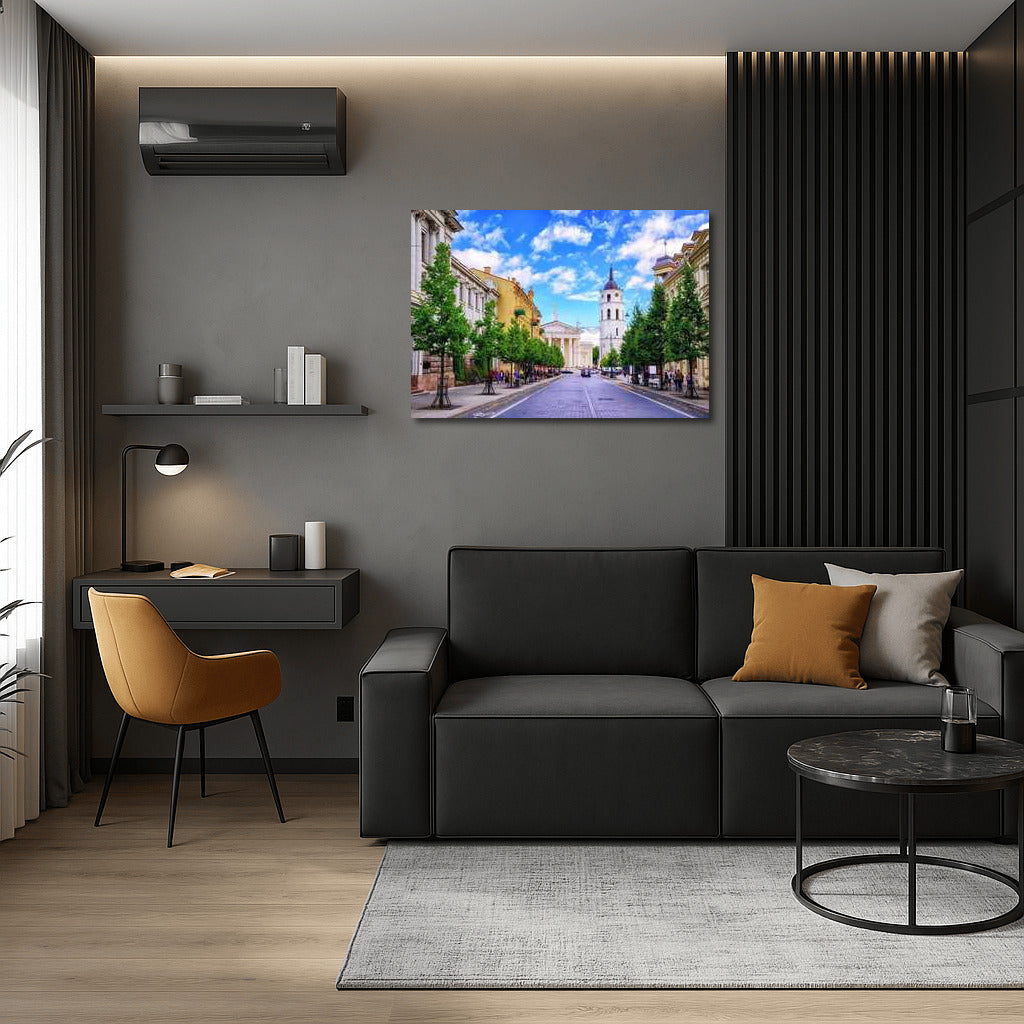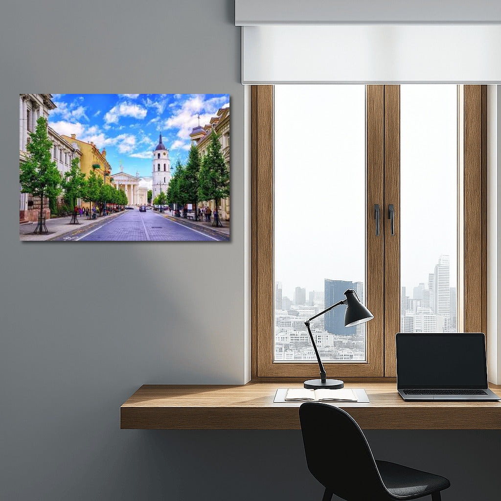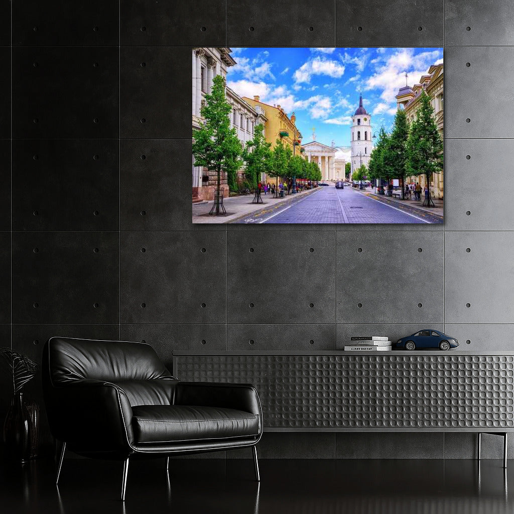 The charm of Lithuanian streets. The poster takes you to the heart of Vilnius - the atmosphere of history and beauty. Wall art with a soul. See more from the collection: Country Art