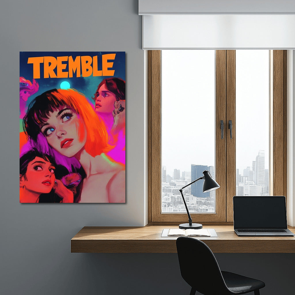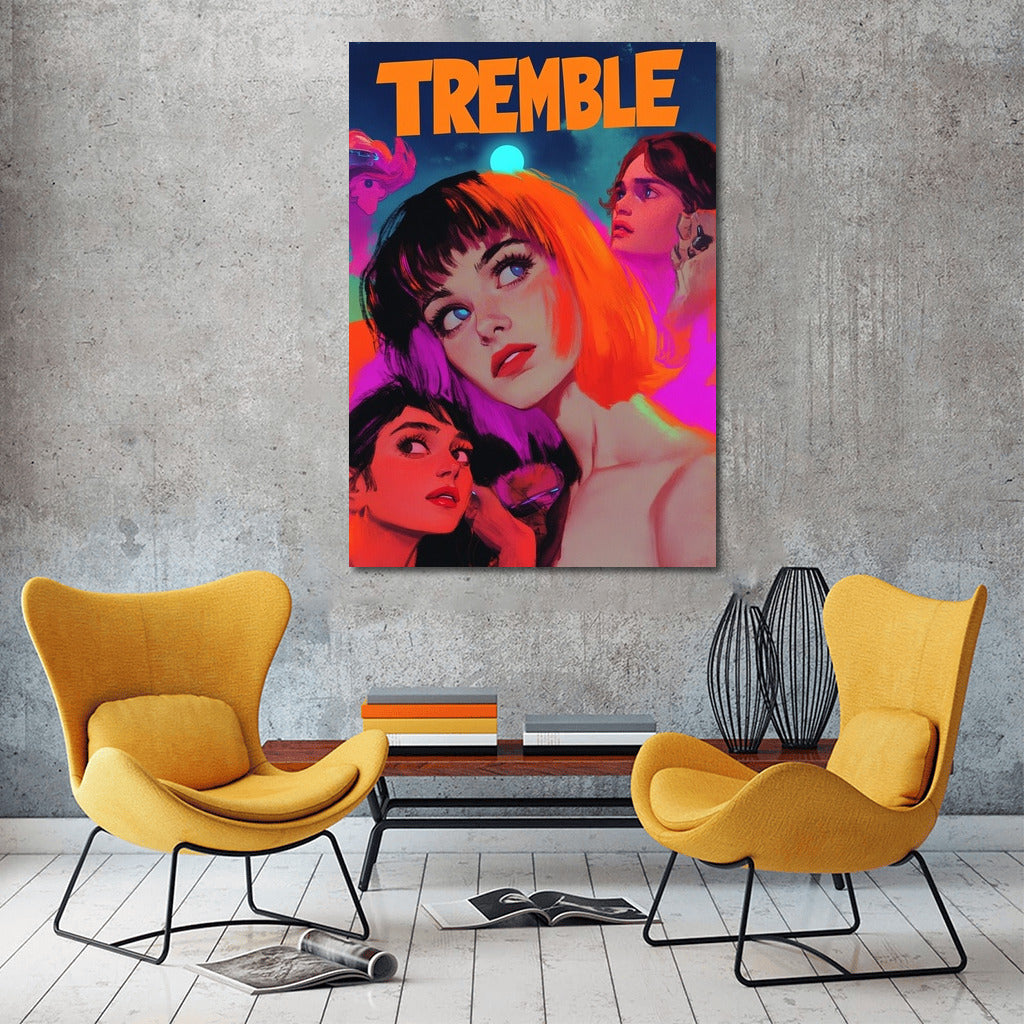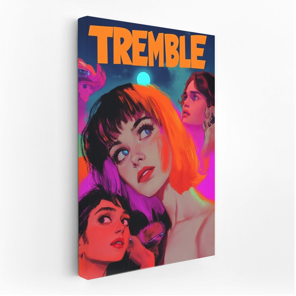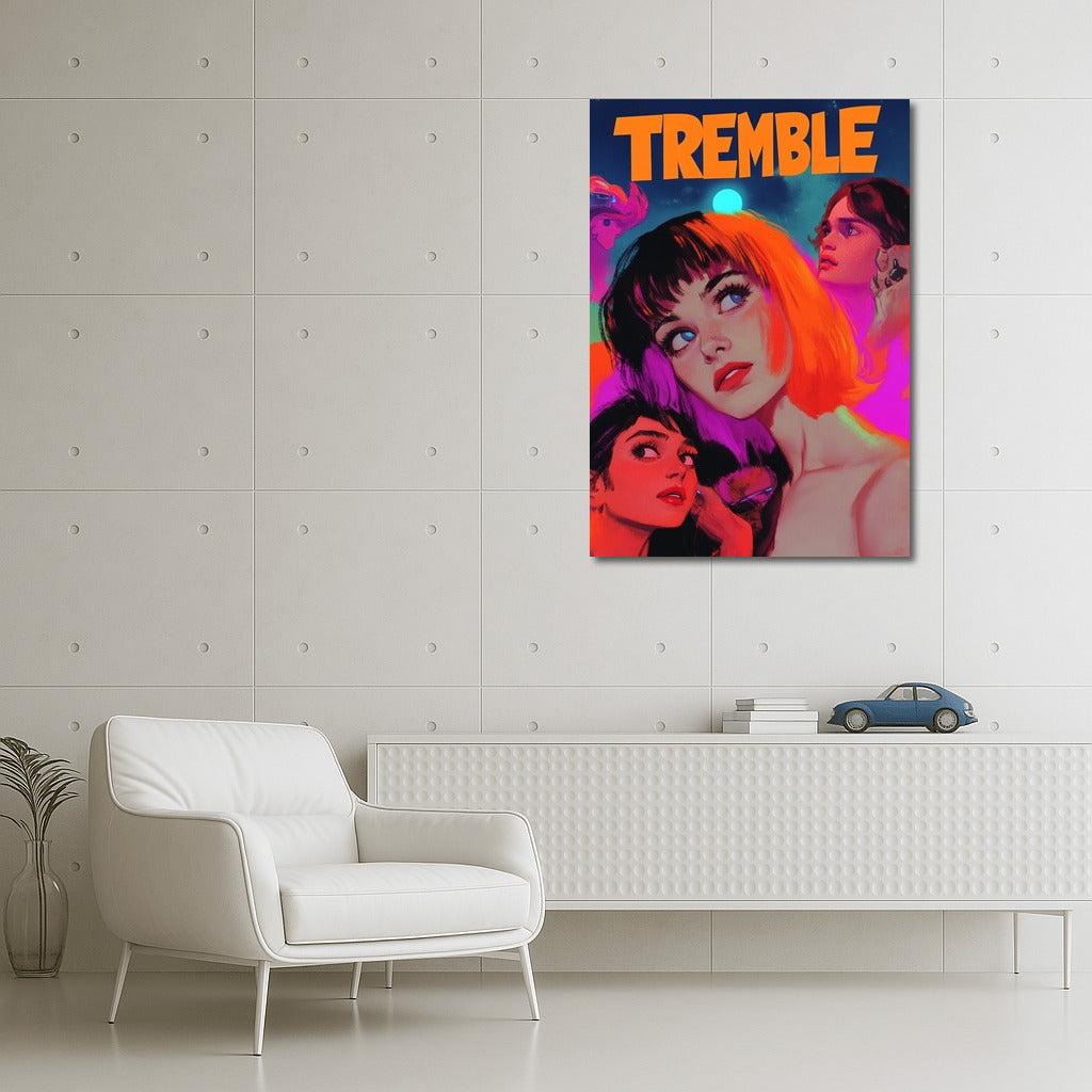 A mysterious painting with bright images of girls. A bright accent in wall art. Add courage to your interior! See more from the collection: Pop Art