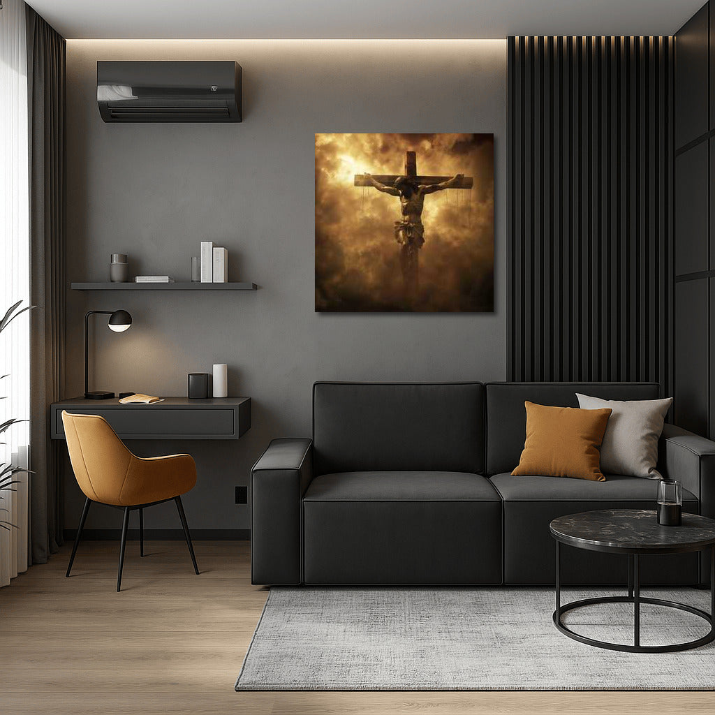 The Crucifixion of Jesus Christ in the Golden Clouds: Symbol of Faith and Sacrifice Wall Art