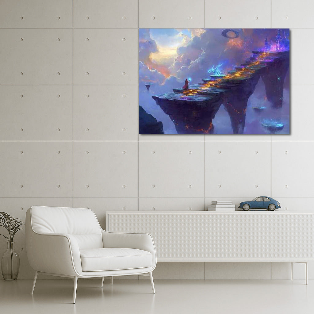 The Dragon and the Mysterious Wanderer: Journey to the Sky Castle Wall Art