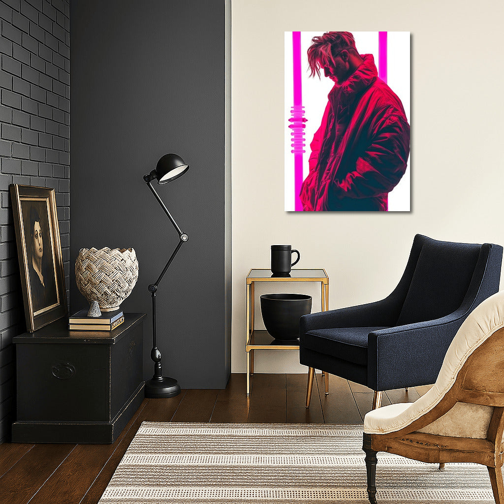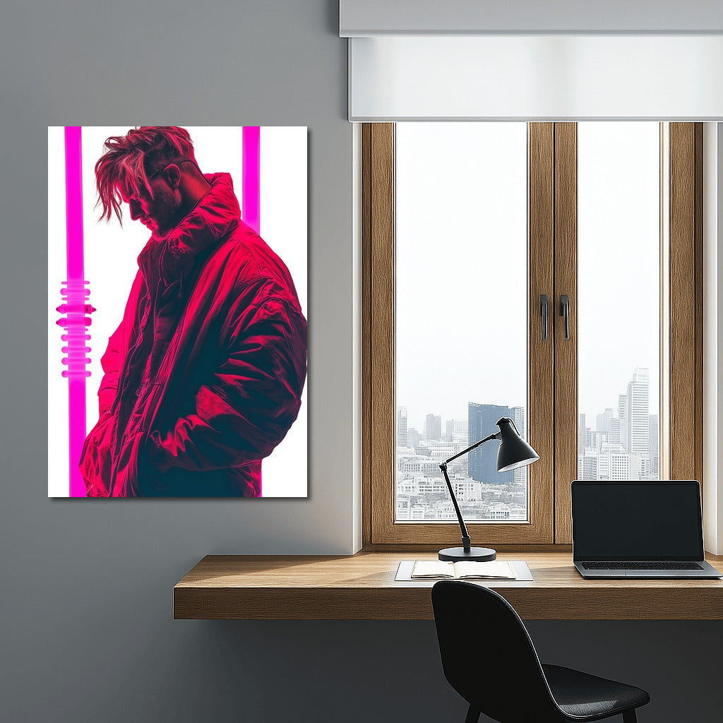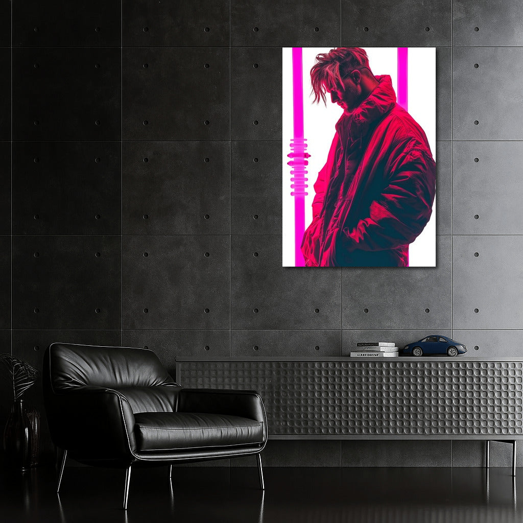 Neon glow: stylish man on expressive poster. Modern wall art for bright interior. See more from the collection: Neon Art
