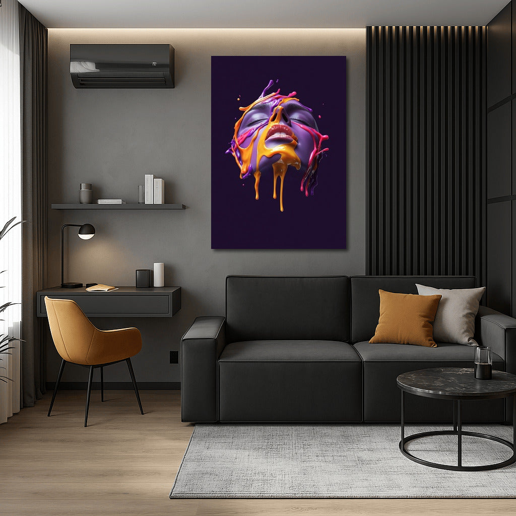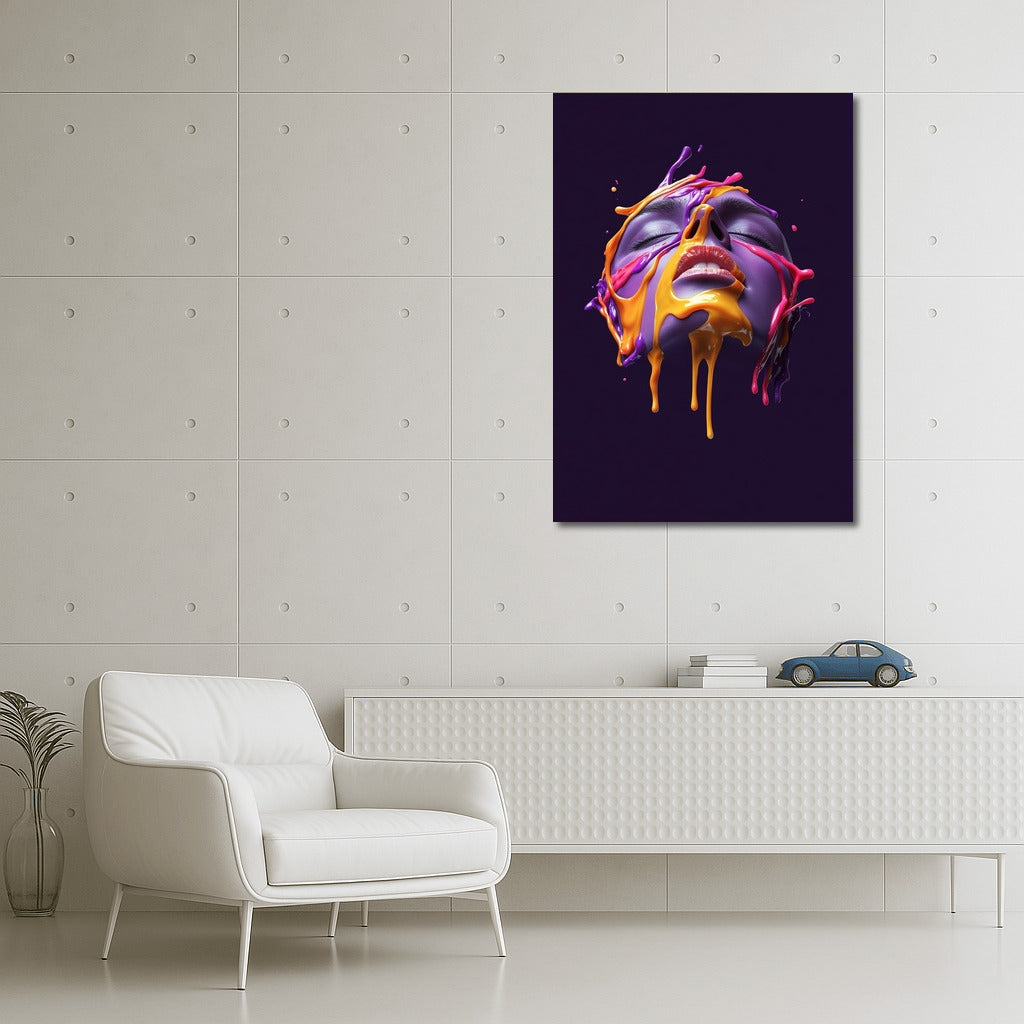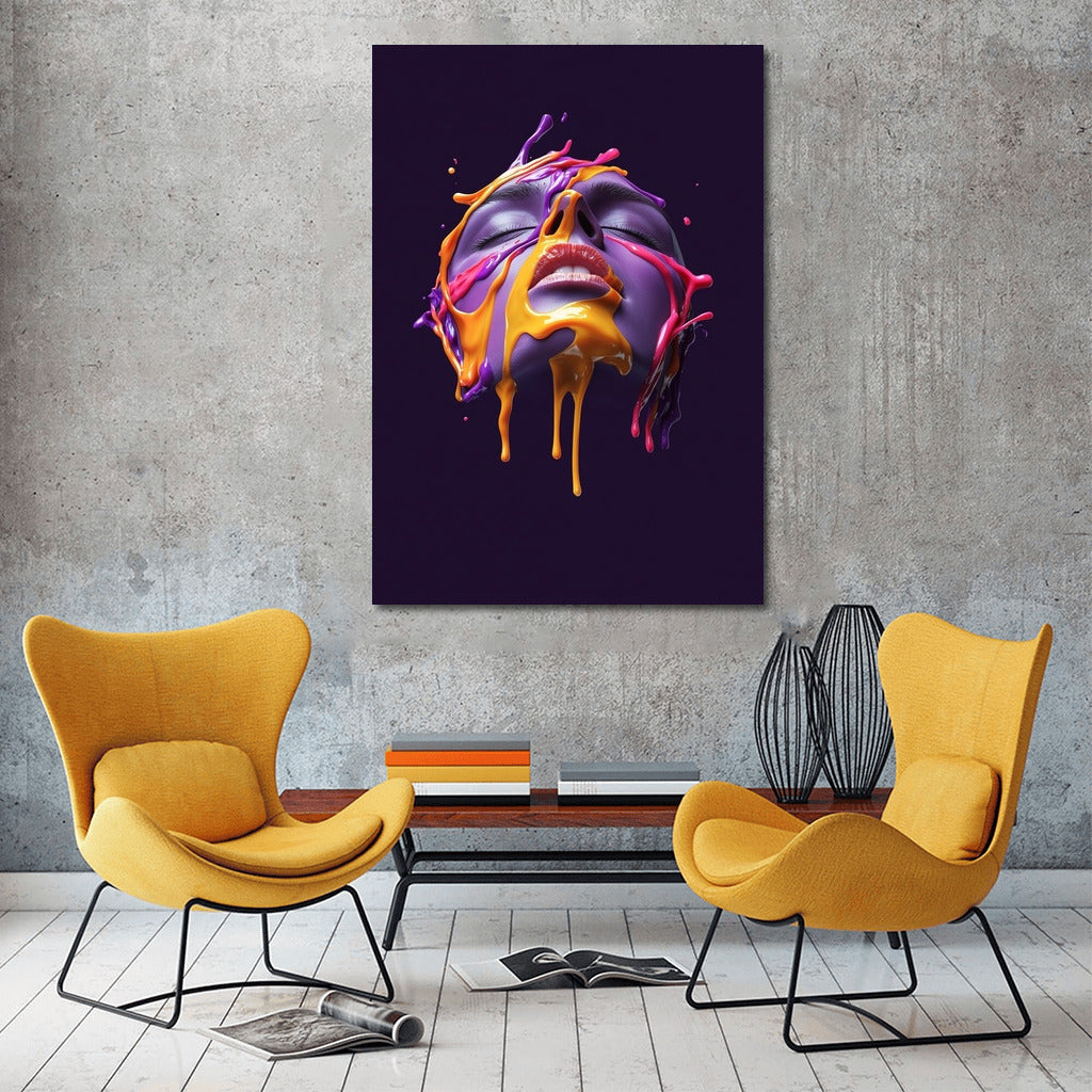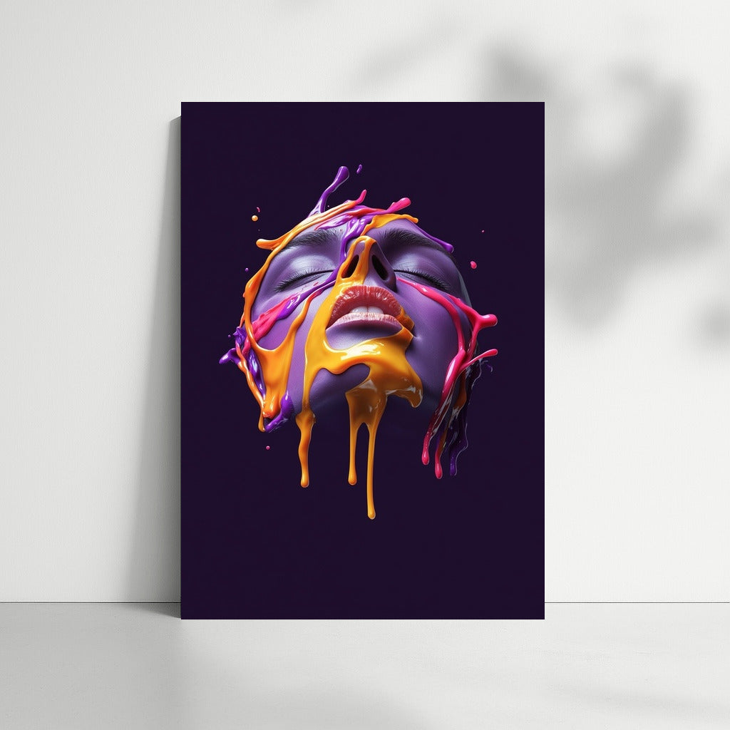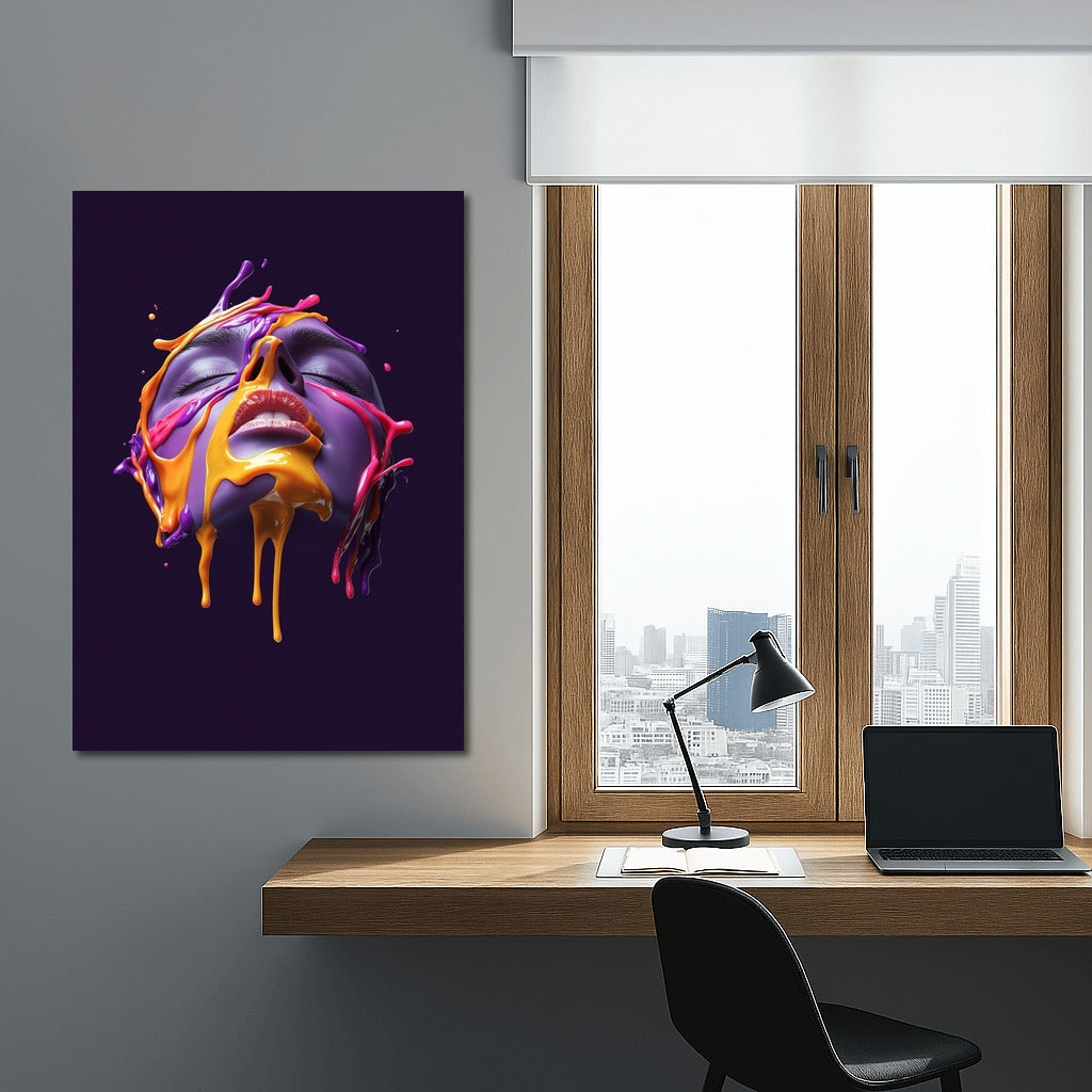 A disturbing play of colors on the poster: a face in a whirlwind of colored streams. Ideal wall art for a bright atmosphere. See more from the collection: Mixed Wall Art