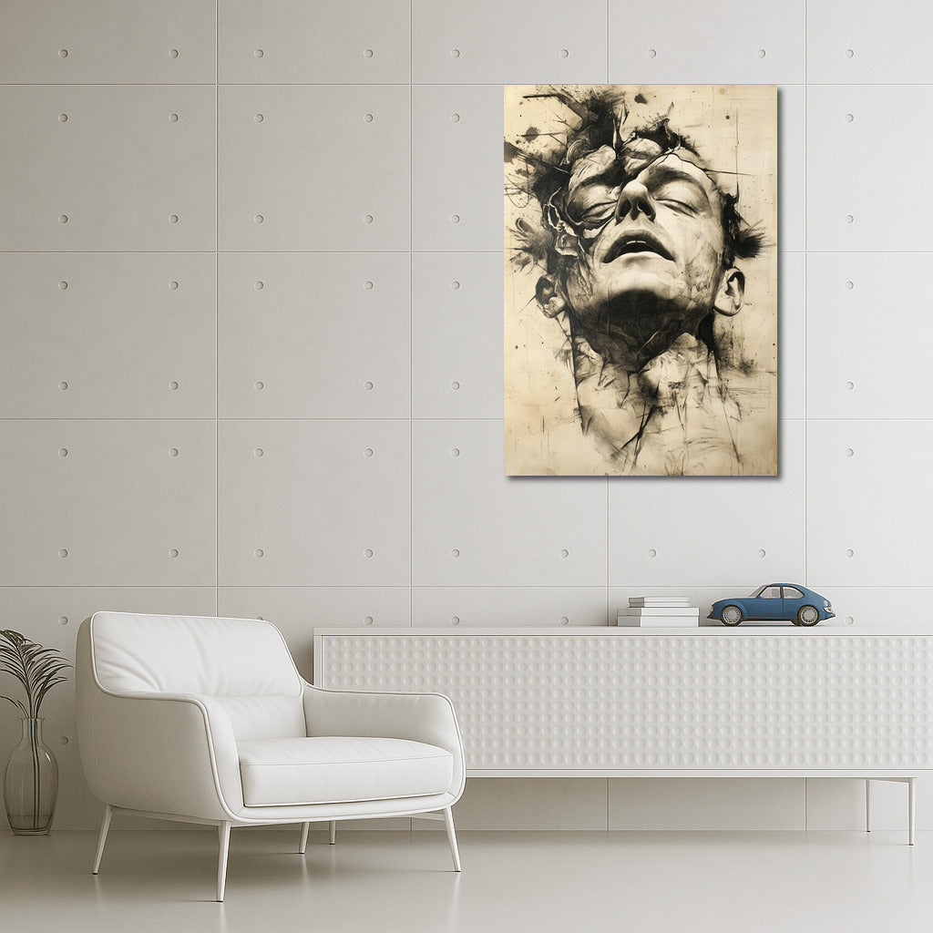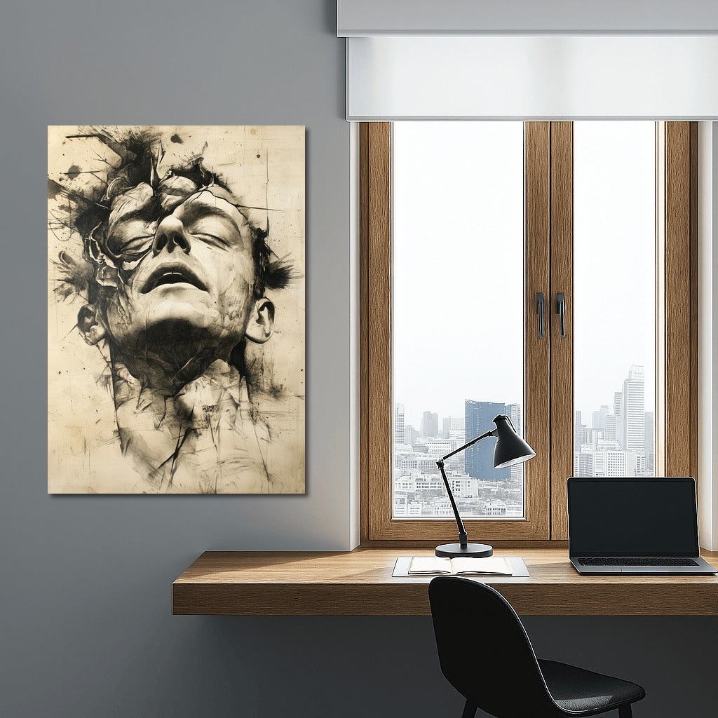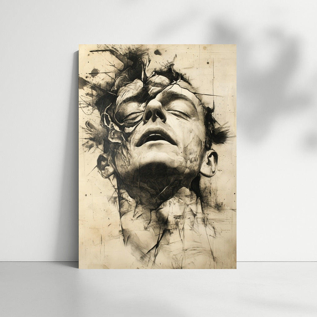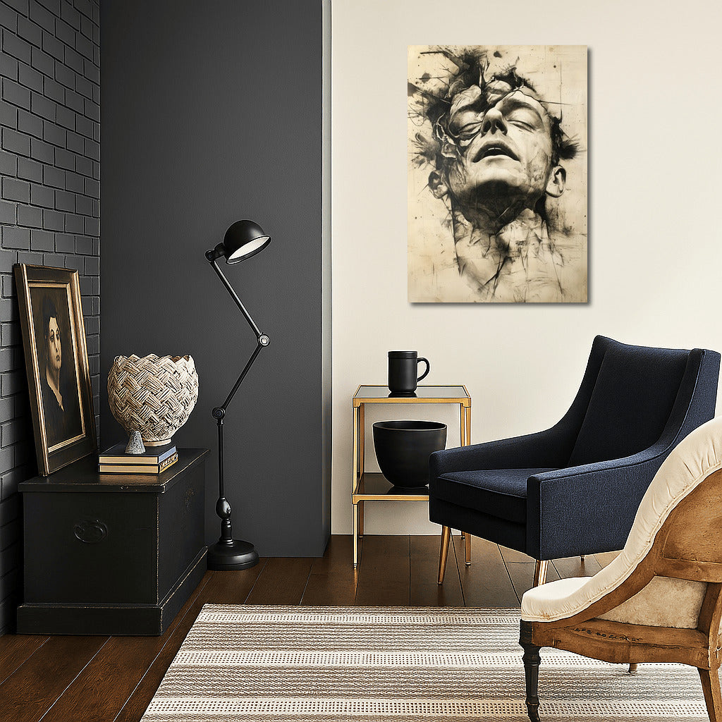 An expressive poster brings life to the interior: the blurred edges of reality on the face create an atmosphere of rebellious inspiration. See more from the collection: Mixed Wall Art