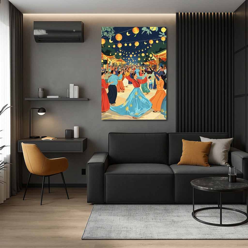 Immerse your interior in a festive atmosphere! This bright poster will enliven the walls with dance and warm light of lanterns. Wall art with a soul! See more from the collection: Mixed Wall Art
