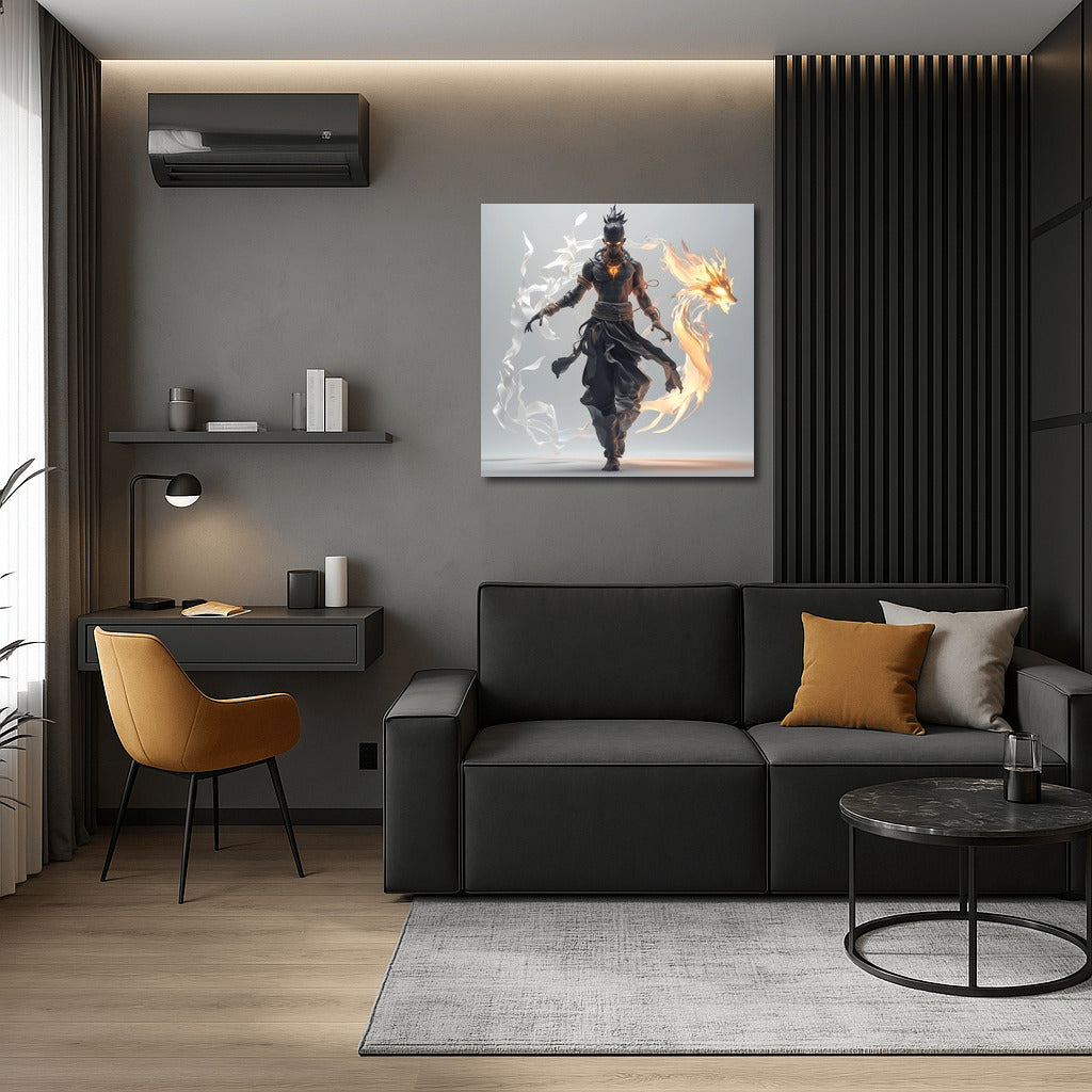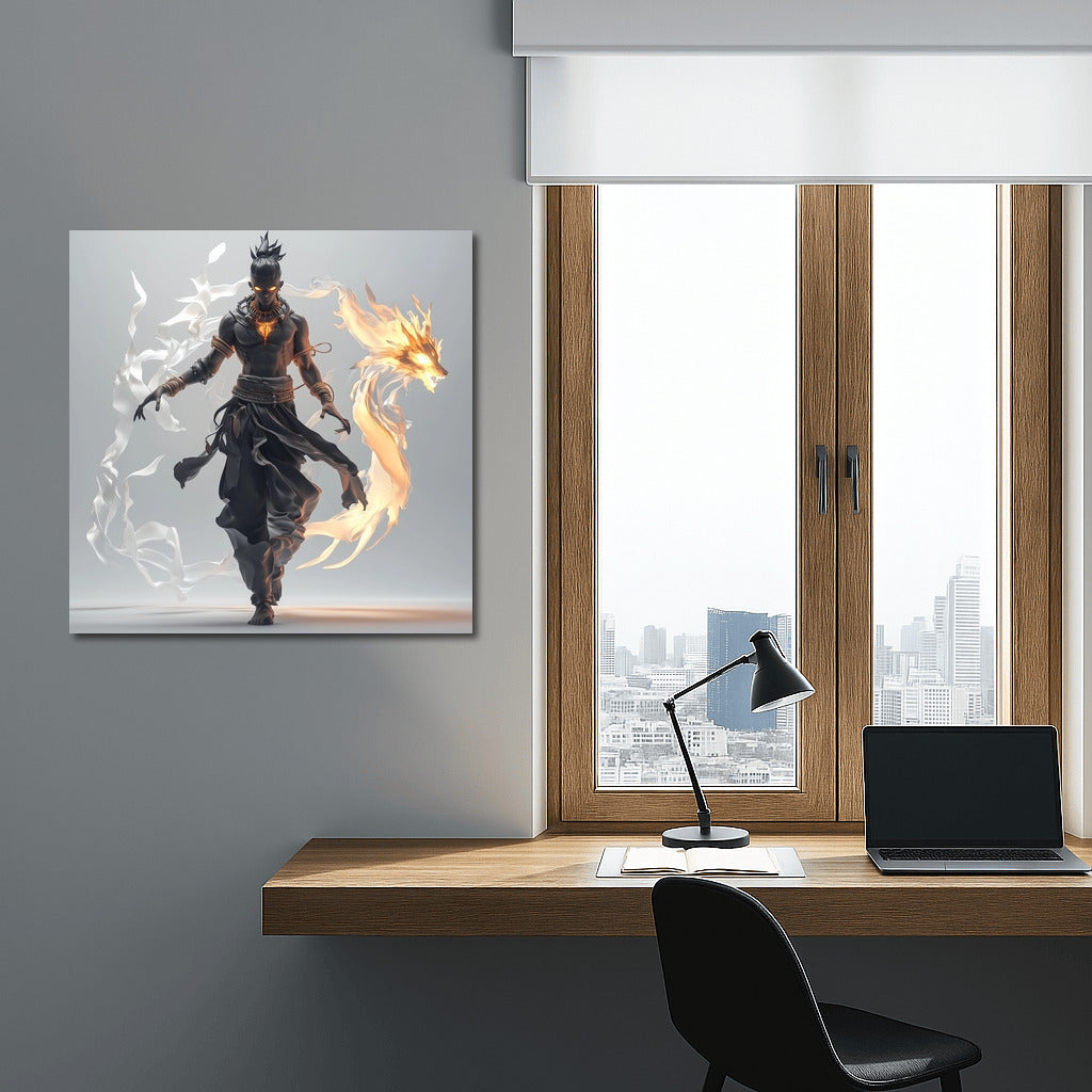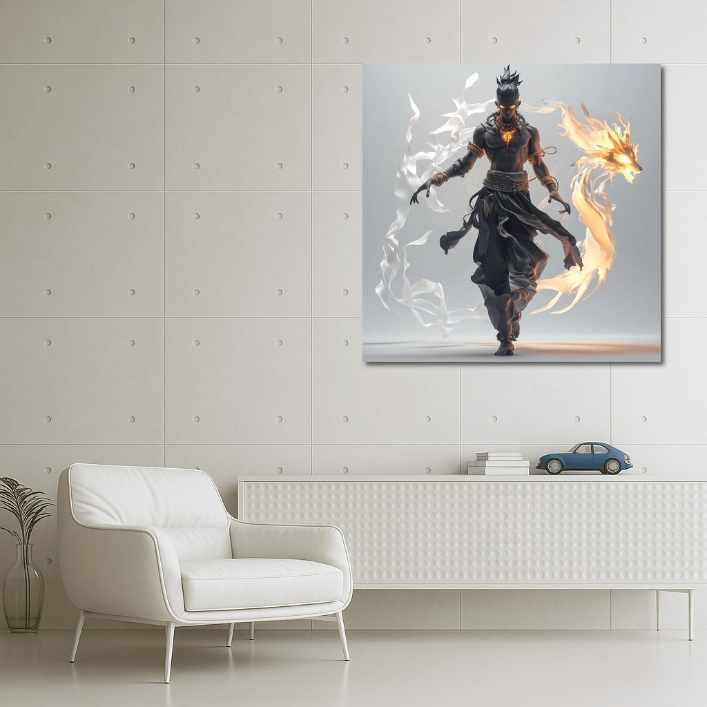 Magical Poster: Mysterious Character with a Fire Spirit. Wall art for those who are looking for unique magic. See more from the collection: Mixed Wall Art