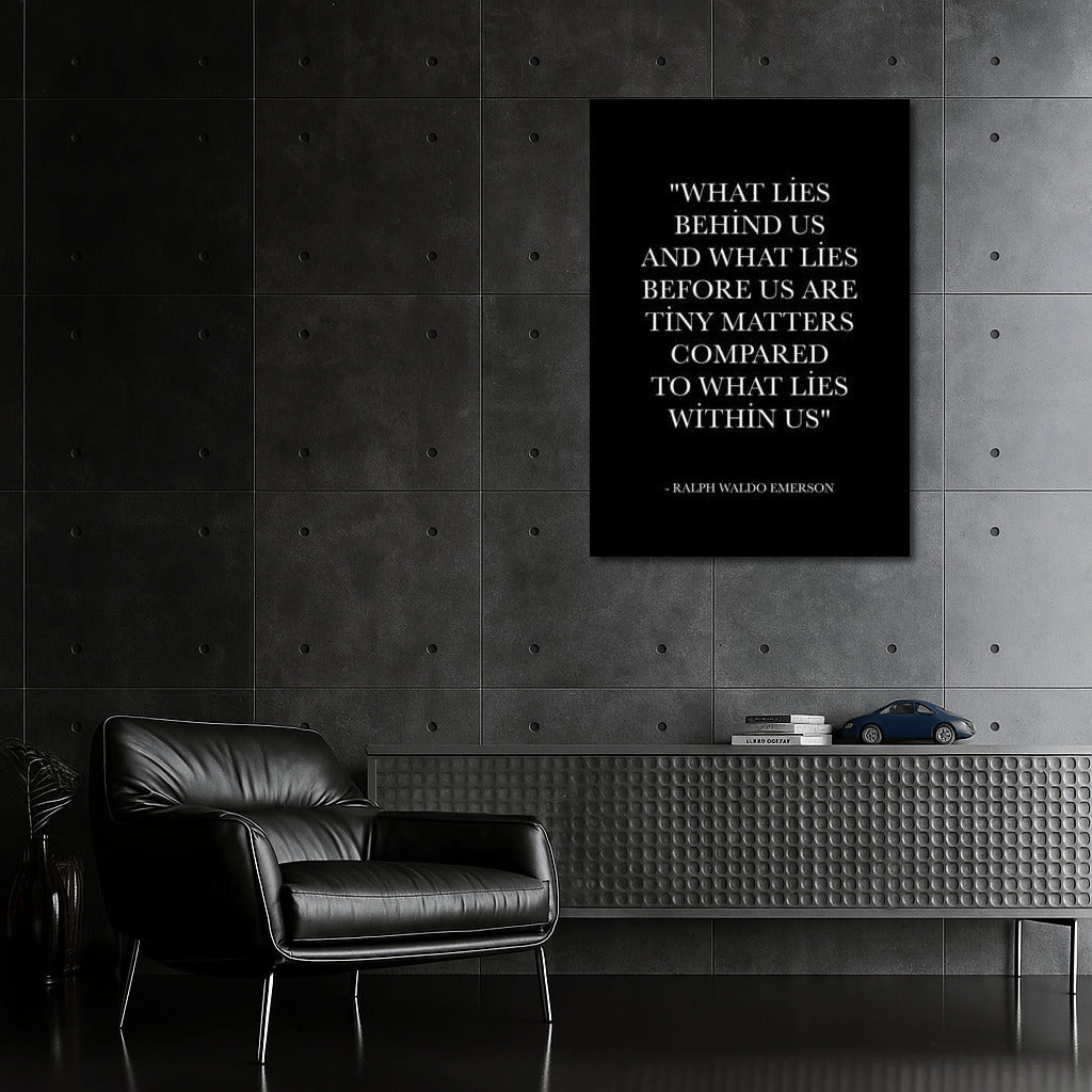 What lies within us poster by Ralph Waldo Emerson. This wall art is the key to self-motivation and eternal inspiration. See more from the collection: Inspirational & Motivational Quotes Art