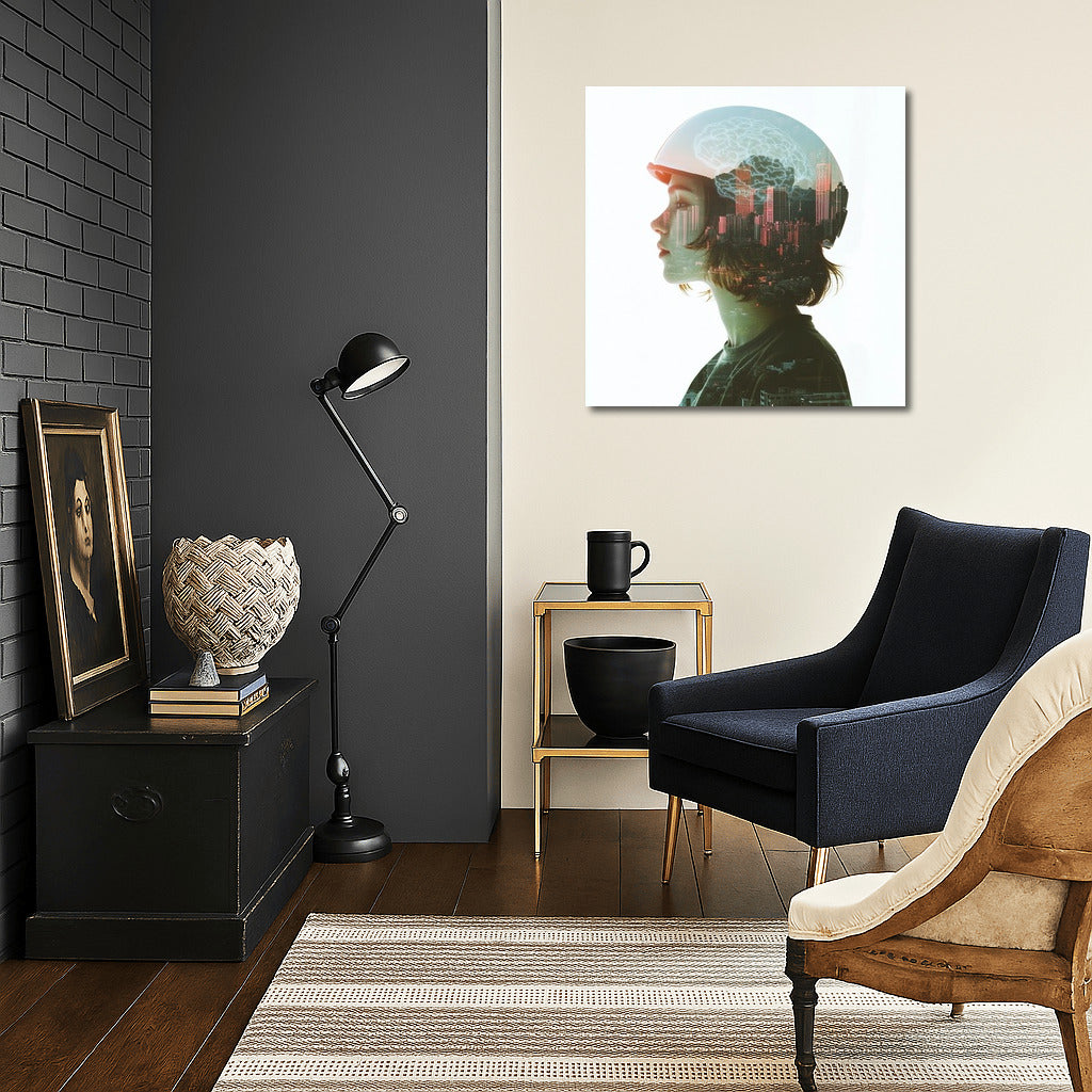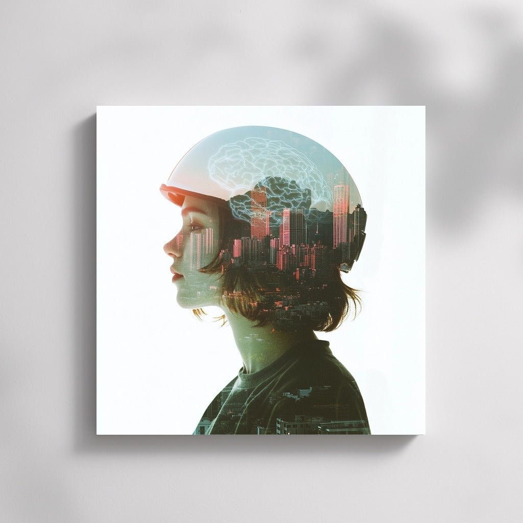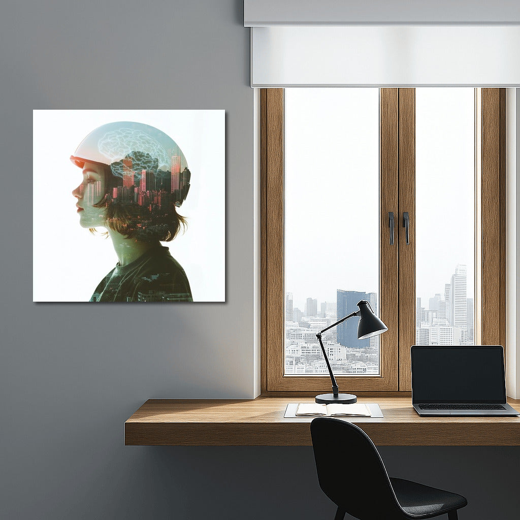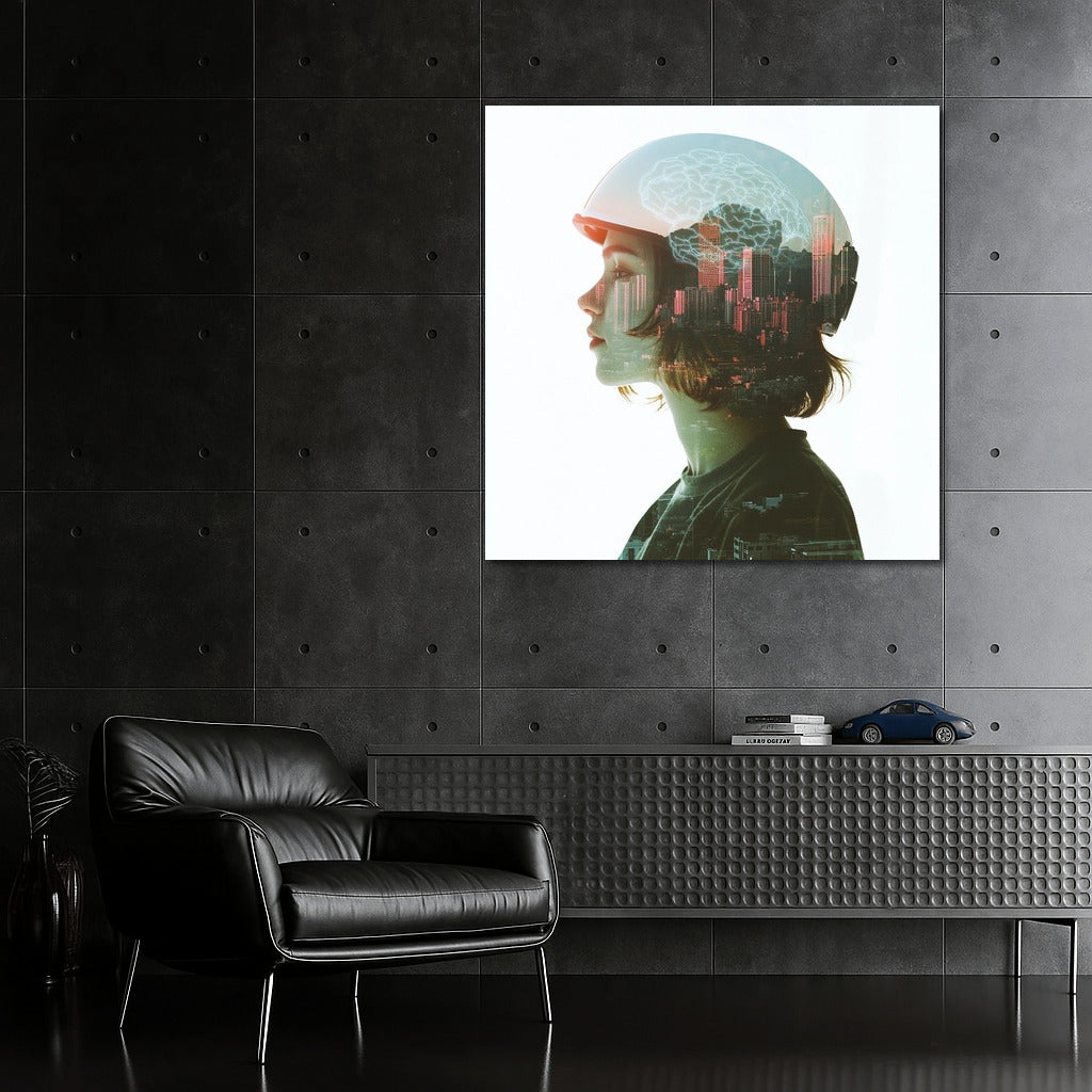 Harmony of Mind and City: A stylish poster where architecture and consciousness intertwine in unique wall art. See more from the collection: Mixed Wall Art