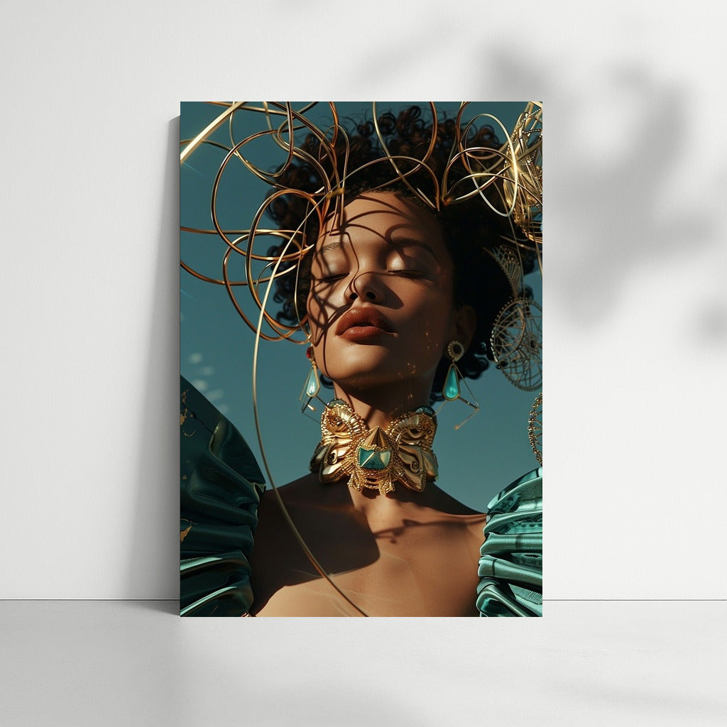 Poster: Mystical Harmony of Nature and Man. Fascinating balance of graceful lines and rich hues in wall art. See more from the collection: Wall Art with Women
