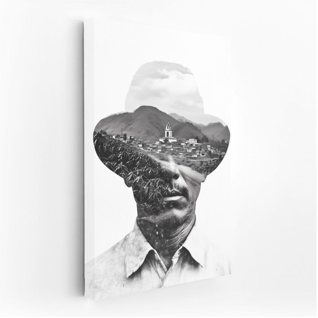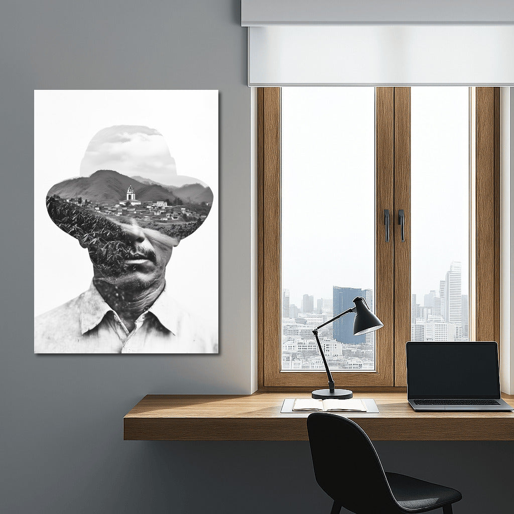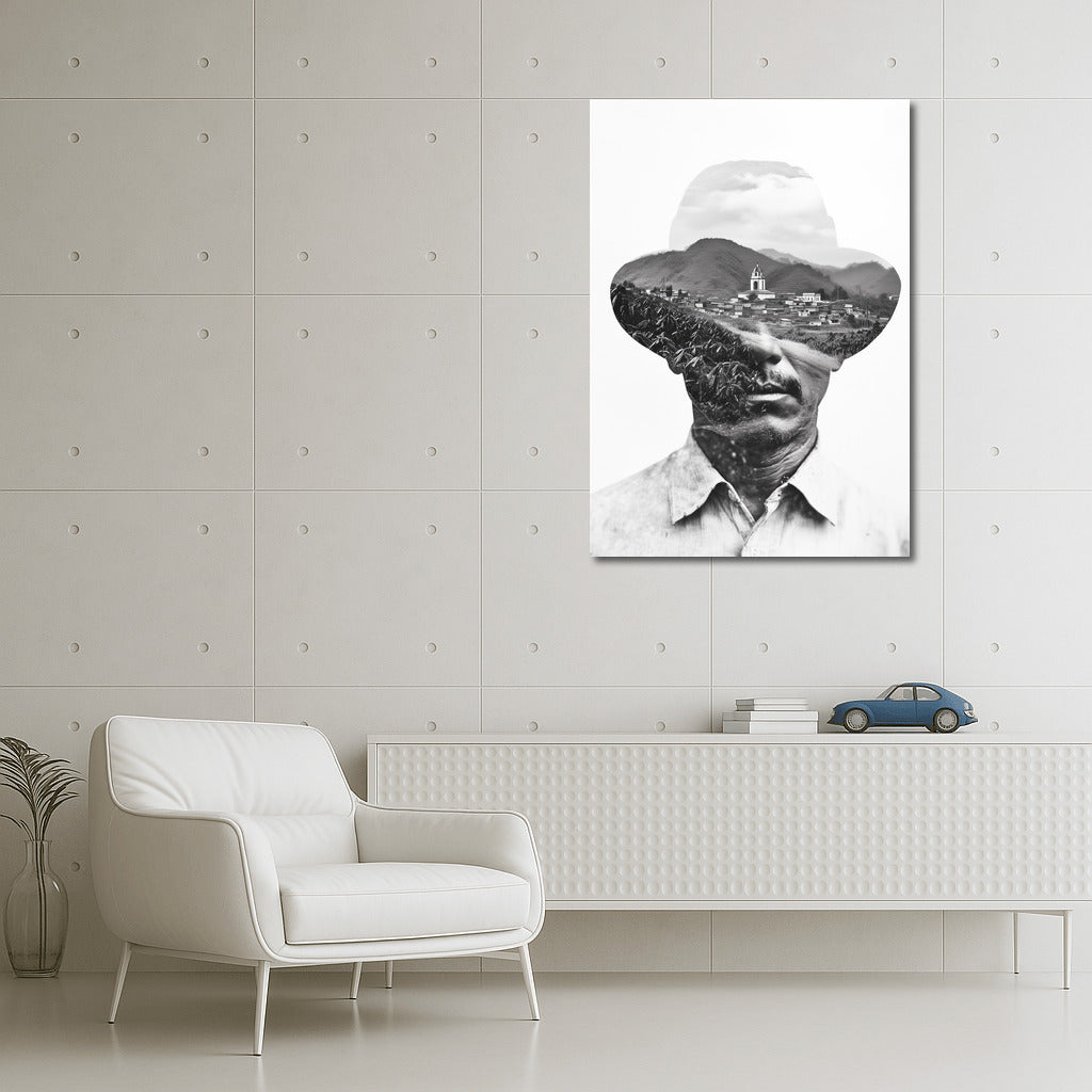 Immerse yourself in a world of double exposure: a human silhouette and a city landscape merge in a unique wall art. See more from the collection: Mixed Wall Art