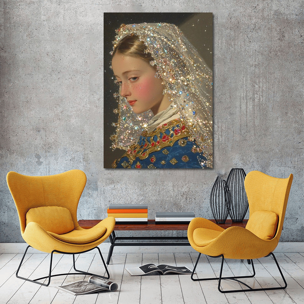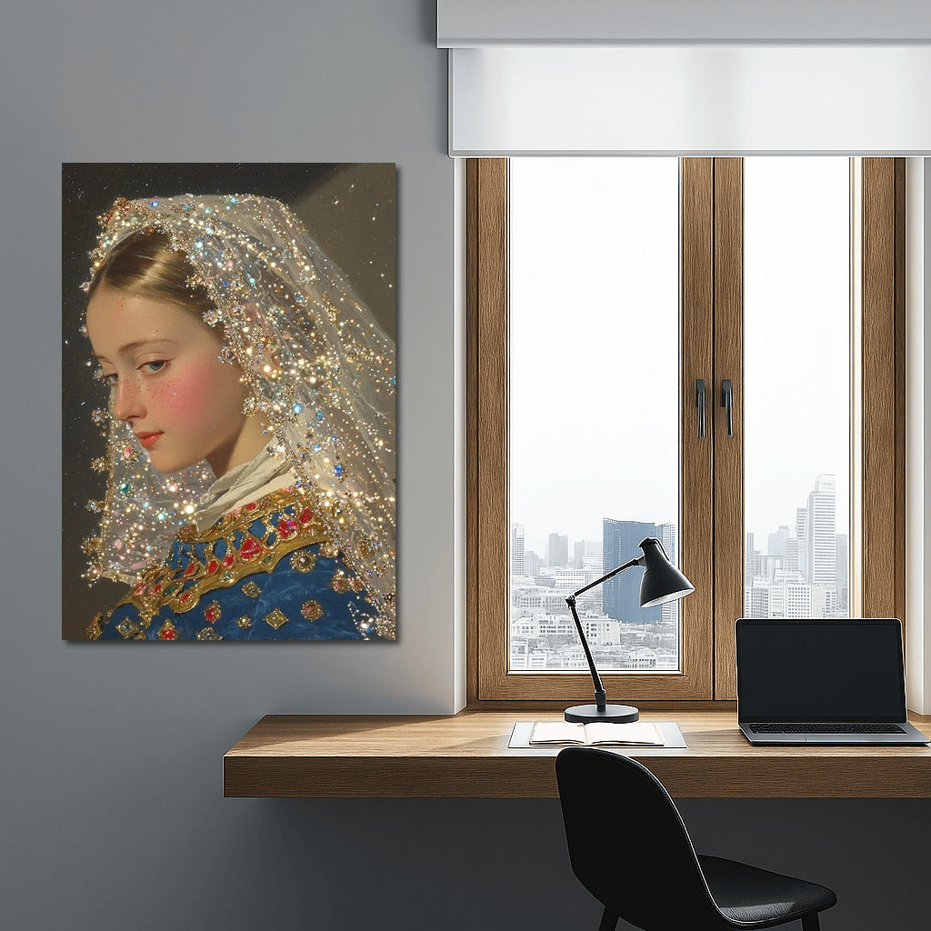 Sparkling wall art: a mysterious figure in a luxurious dress sparkling with precious stones. Magic in every look! See more from the collection: Mixed Wall Art