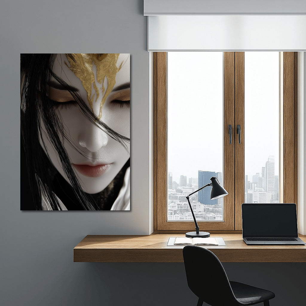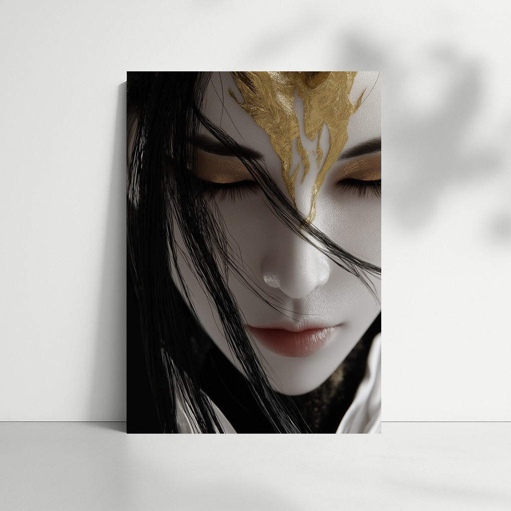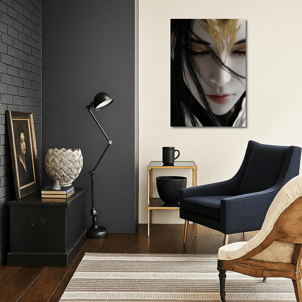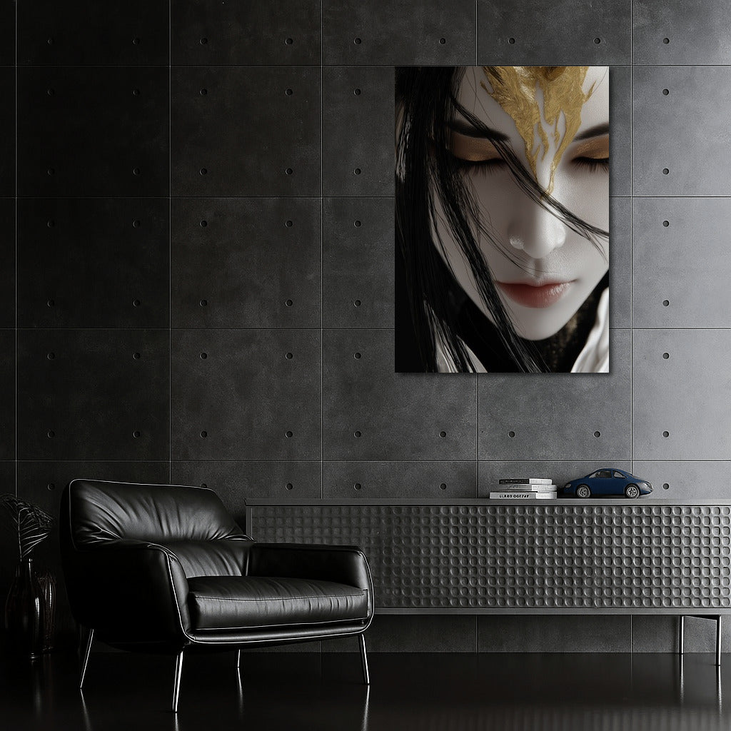 A magical portrait with a golden ornament. This painting will become the highlight of any interior, adding sophistication and mystery. See more from the collection: Mixed Wall Art