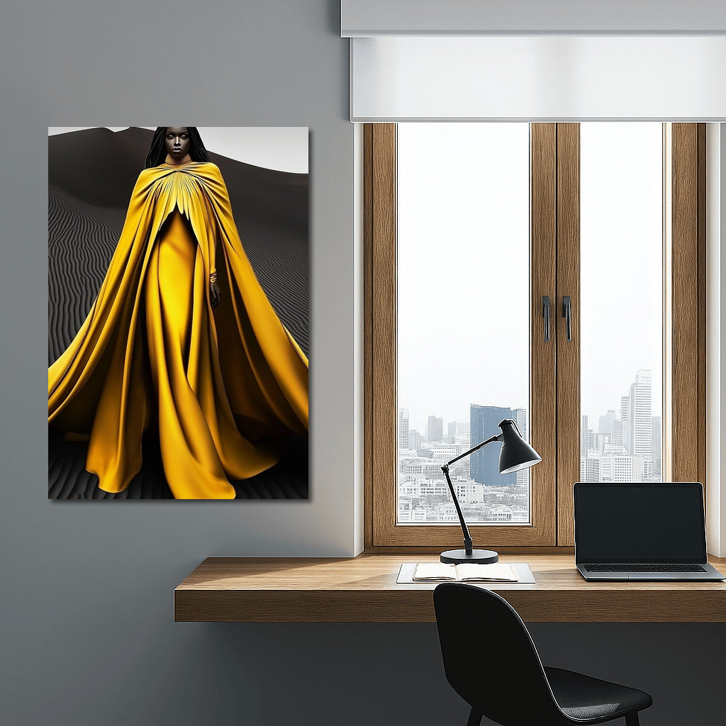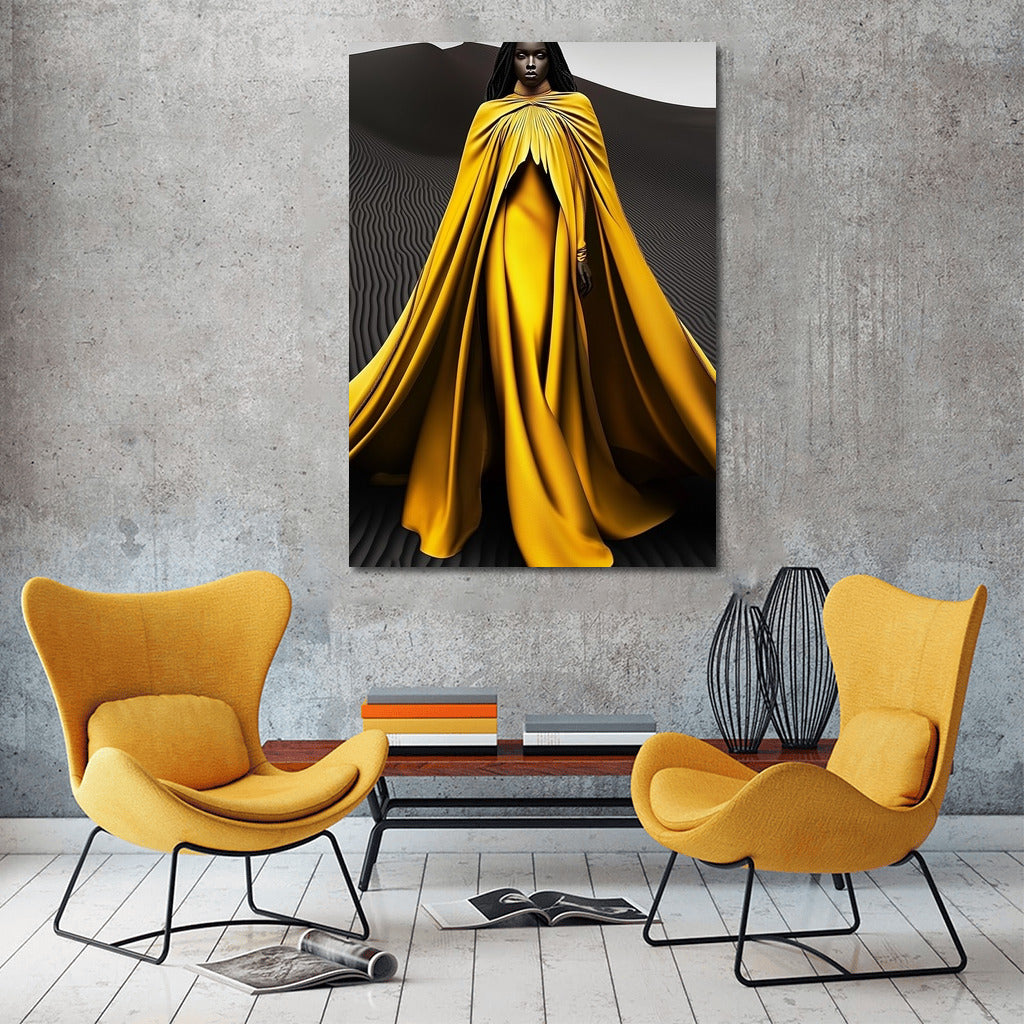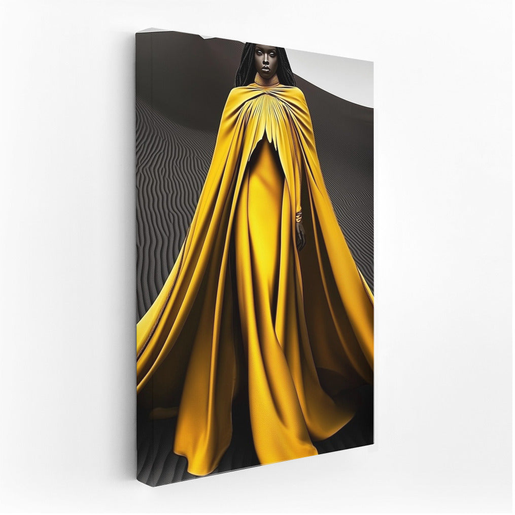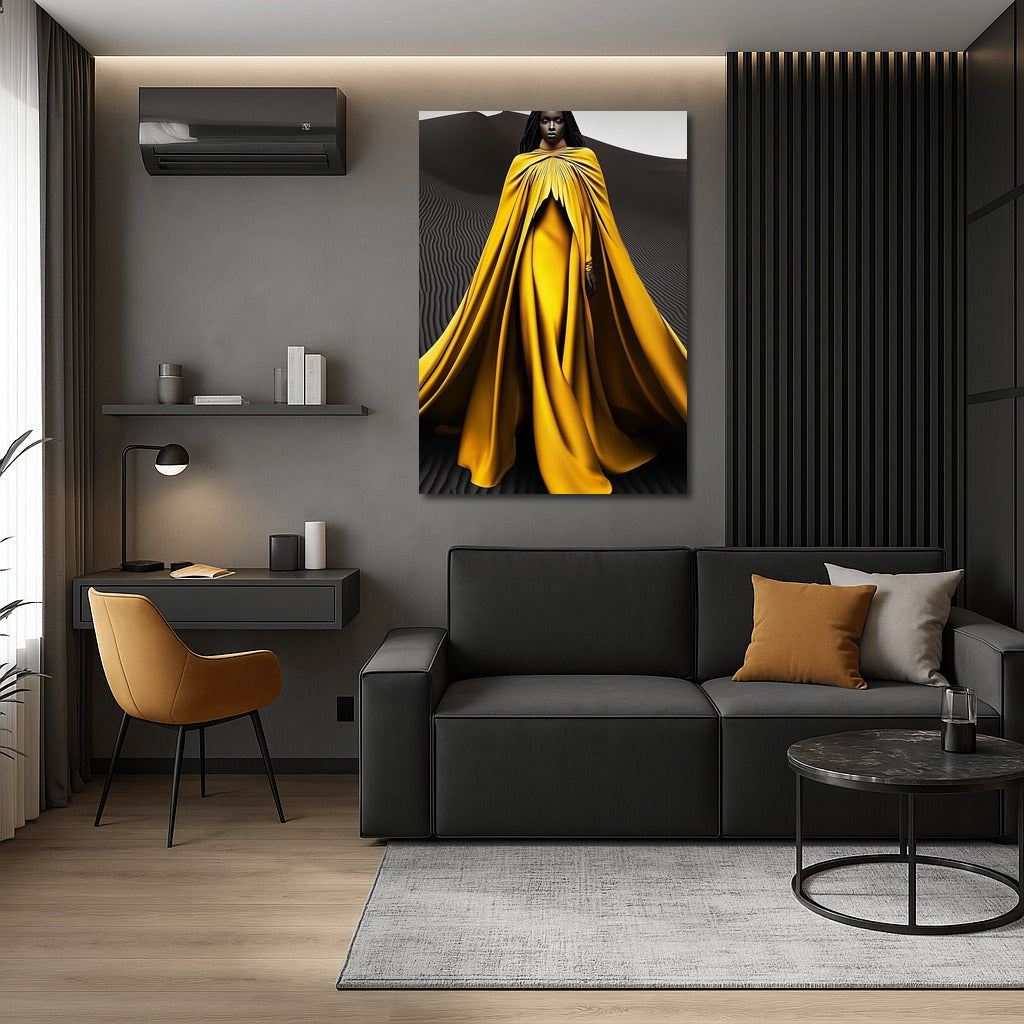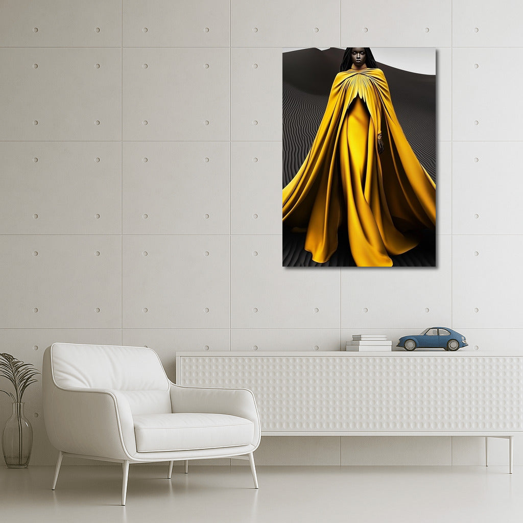 Magical poster: a figure in a golden robe against a backdrop of mysterious sands. Wall art that brings dreams to life. See more from the collection: Fashion Art