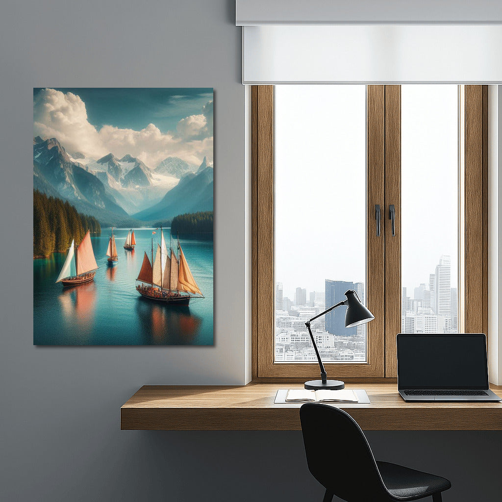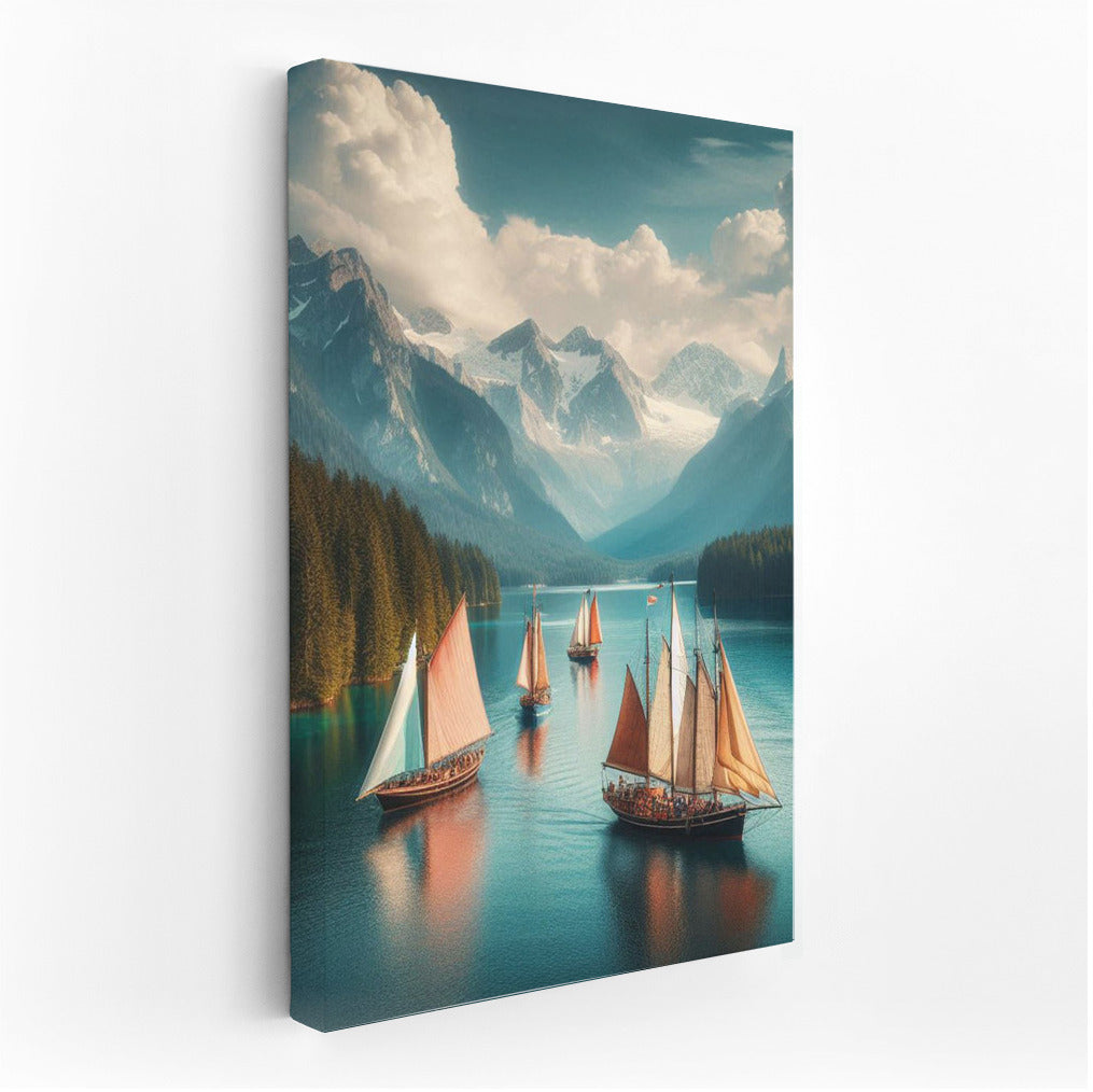 The Grandeur of Schooners on a Mountain Landscape: Tranquility and Beauty Wall Art
