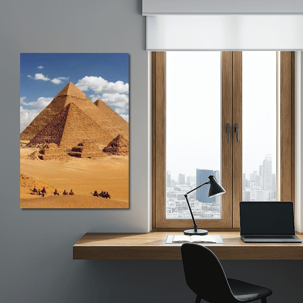 The Grandeur of the Egyptian Pyramids: A Camel Journey Wall Art