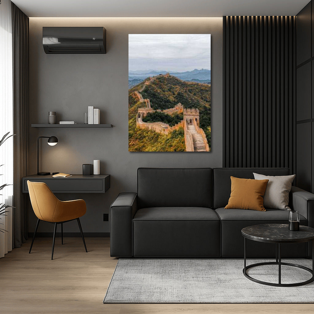 A magnificent wall painting overlooking the Great Wall of China, where the grandeur of nature meets Chinese history. See more from the collection: China Art