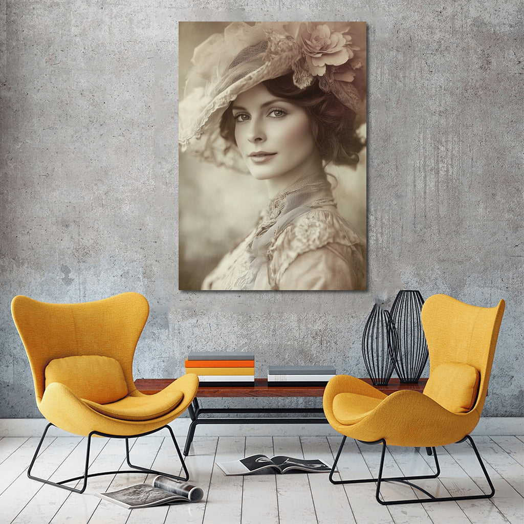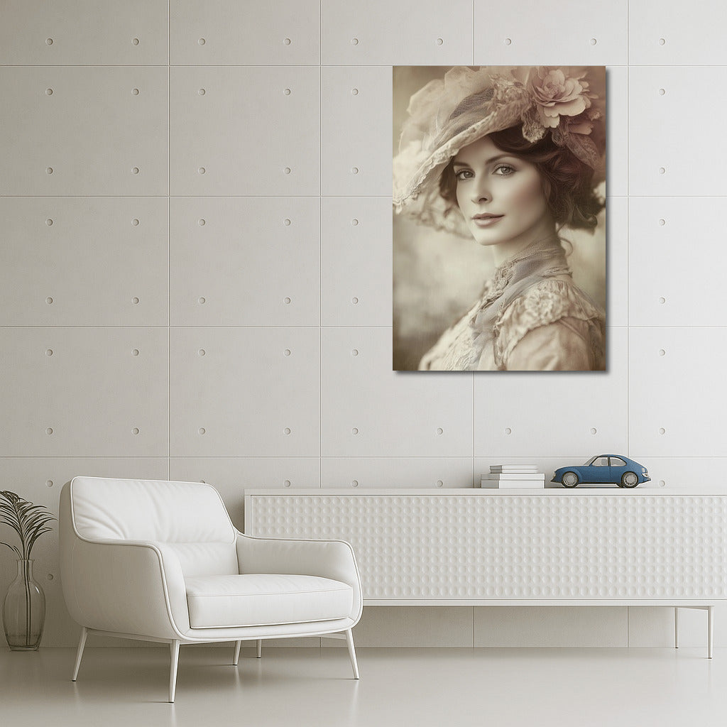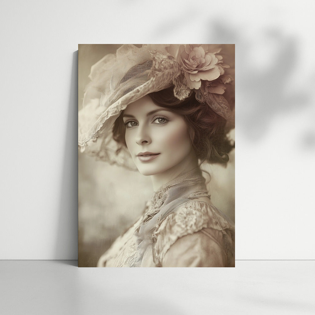 Elegant poster of a vintage lady in a hat. Wall art that takes you back to an era of refined classicism and style. See more from the collection: Wall Art with Women