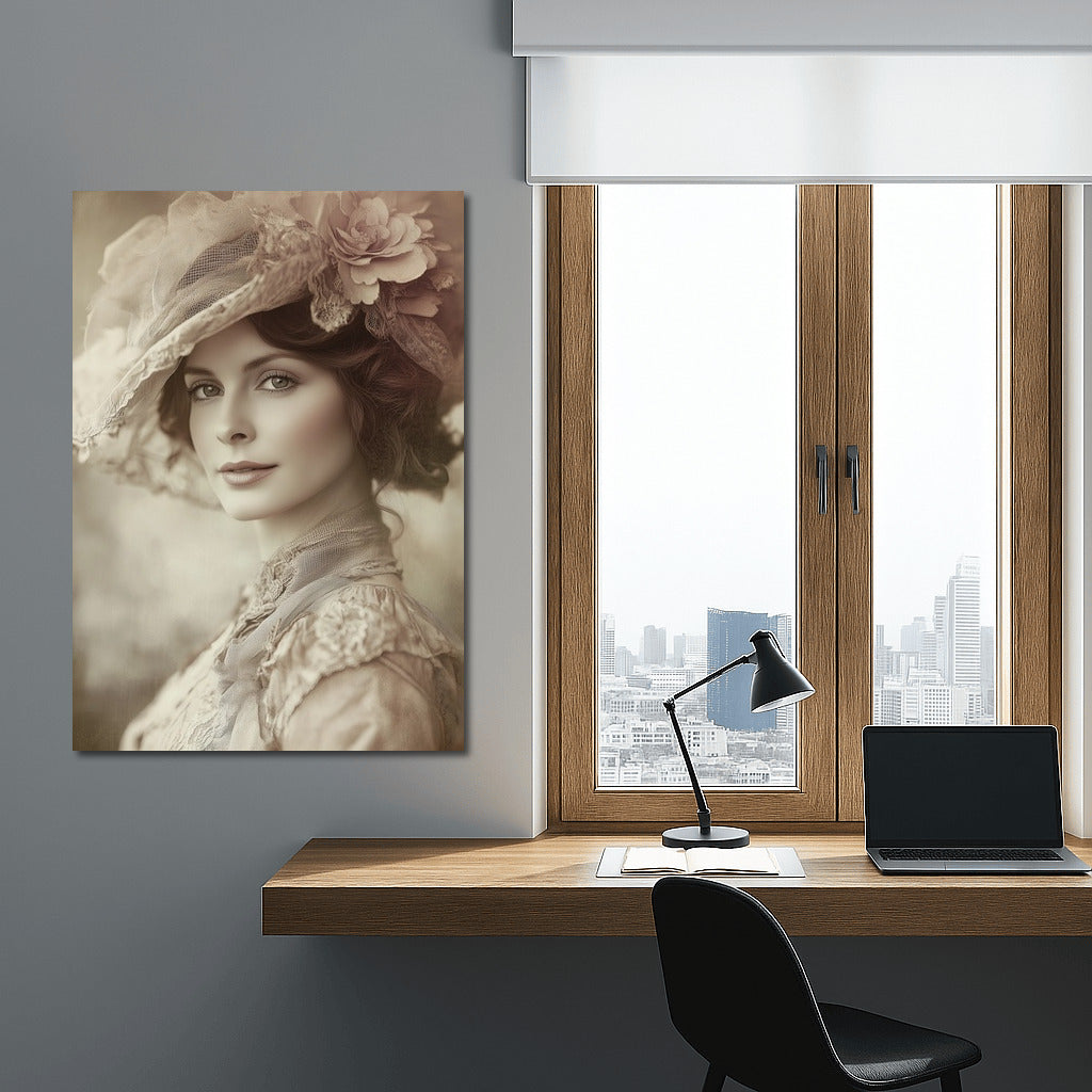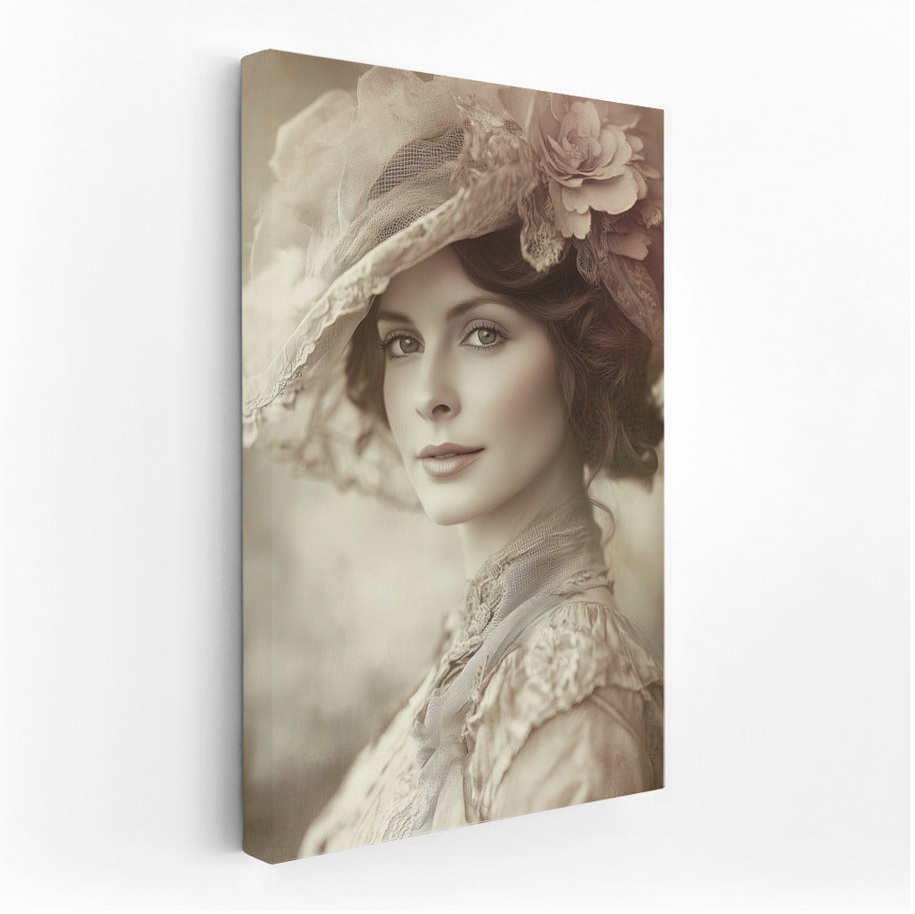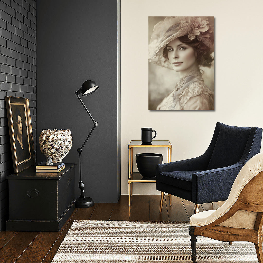 Elegant poster of a vintage lady in a hat. Wall art that takes you back to an era of refined classicism and style. See more from the collection: Wall Art with Women