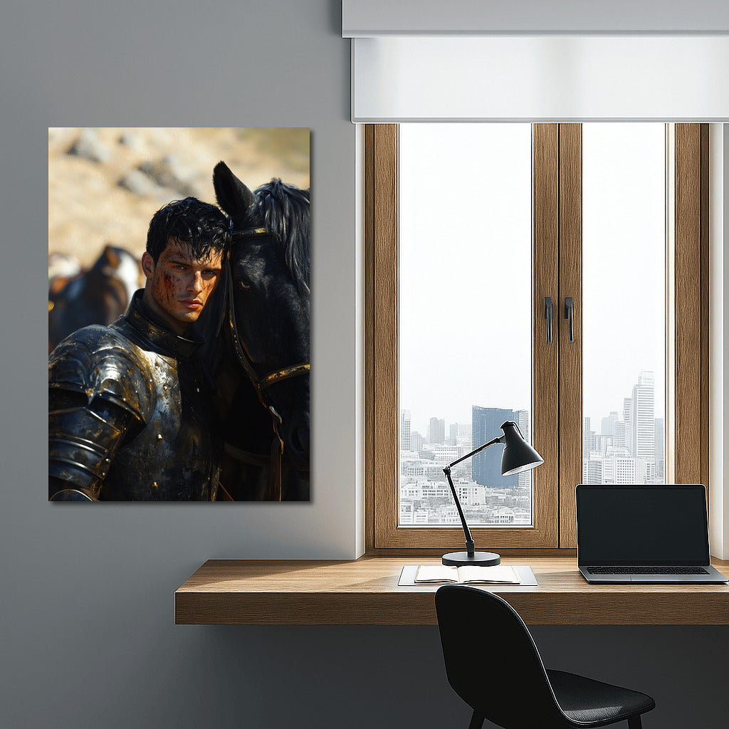 A brave knight and his trusty horse on a country path. Wall art will add a spirit of adventure to your interior. See more from the collection: Mixed Wall Art