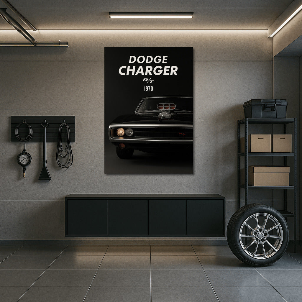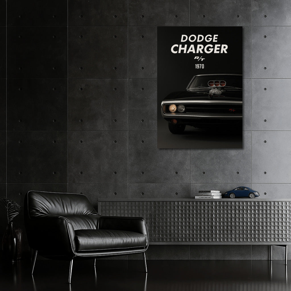 Poster with the legend of the auto industry: Dodge Charger RT 1970. Perfect wall art for fans of speed and style. See more from the collection: Dodge Art