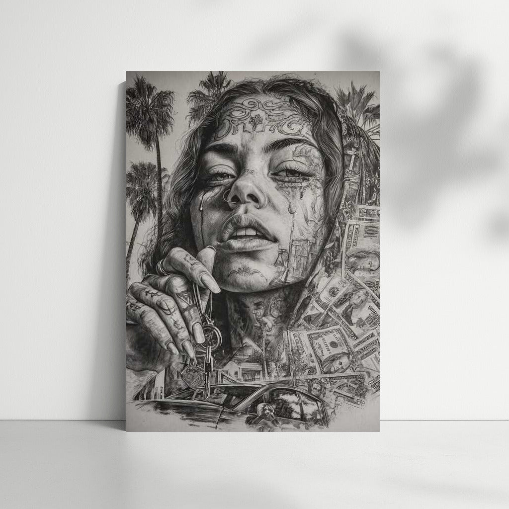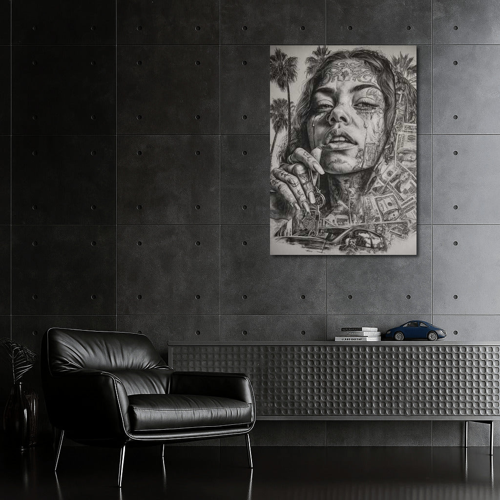 Immerse yourself in the atmosphere of mysterious wealth: a poster with a look of confidence and notes of money art will create a unique style. See more from the collection: Money Art