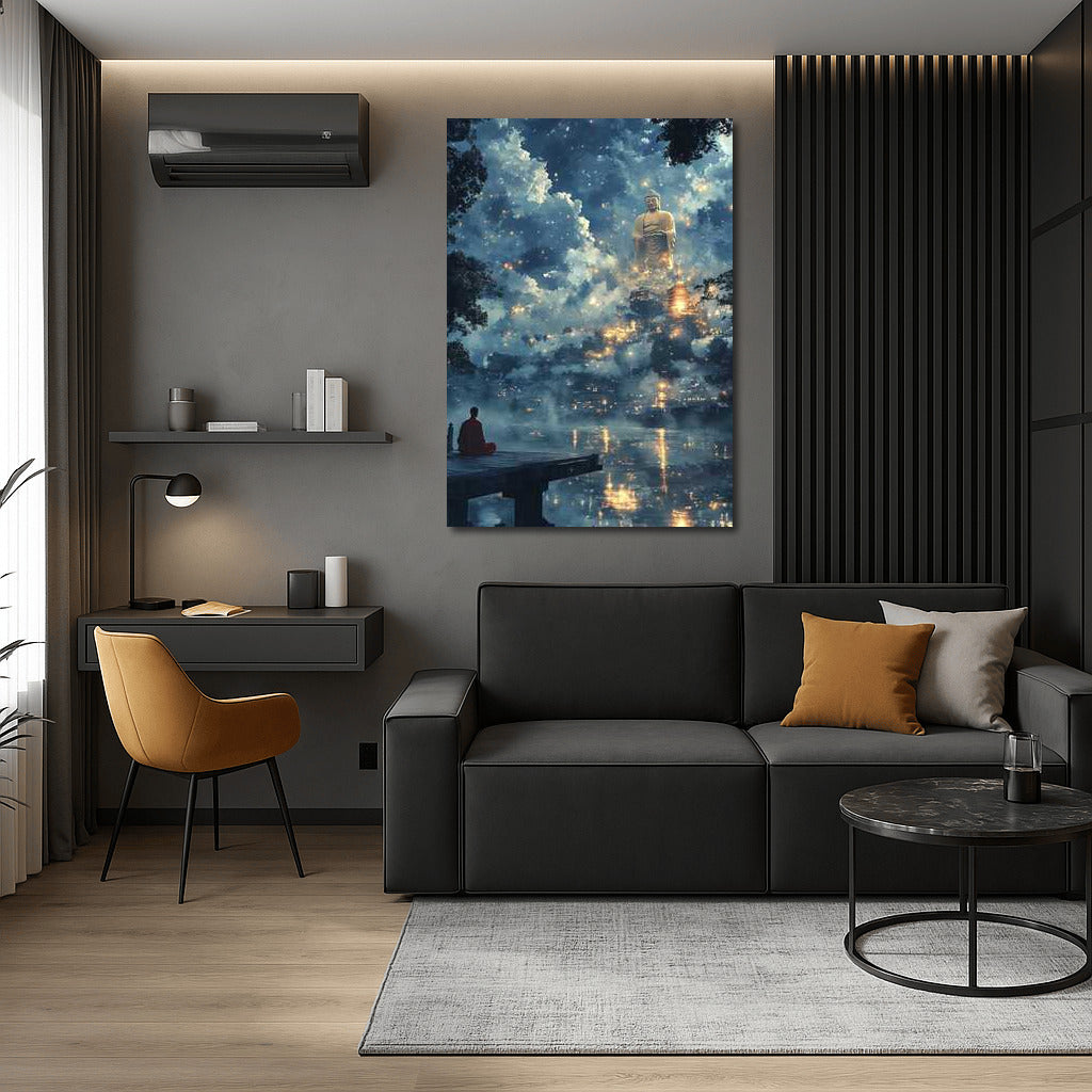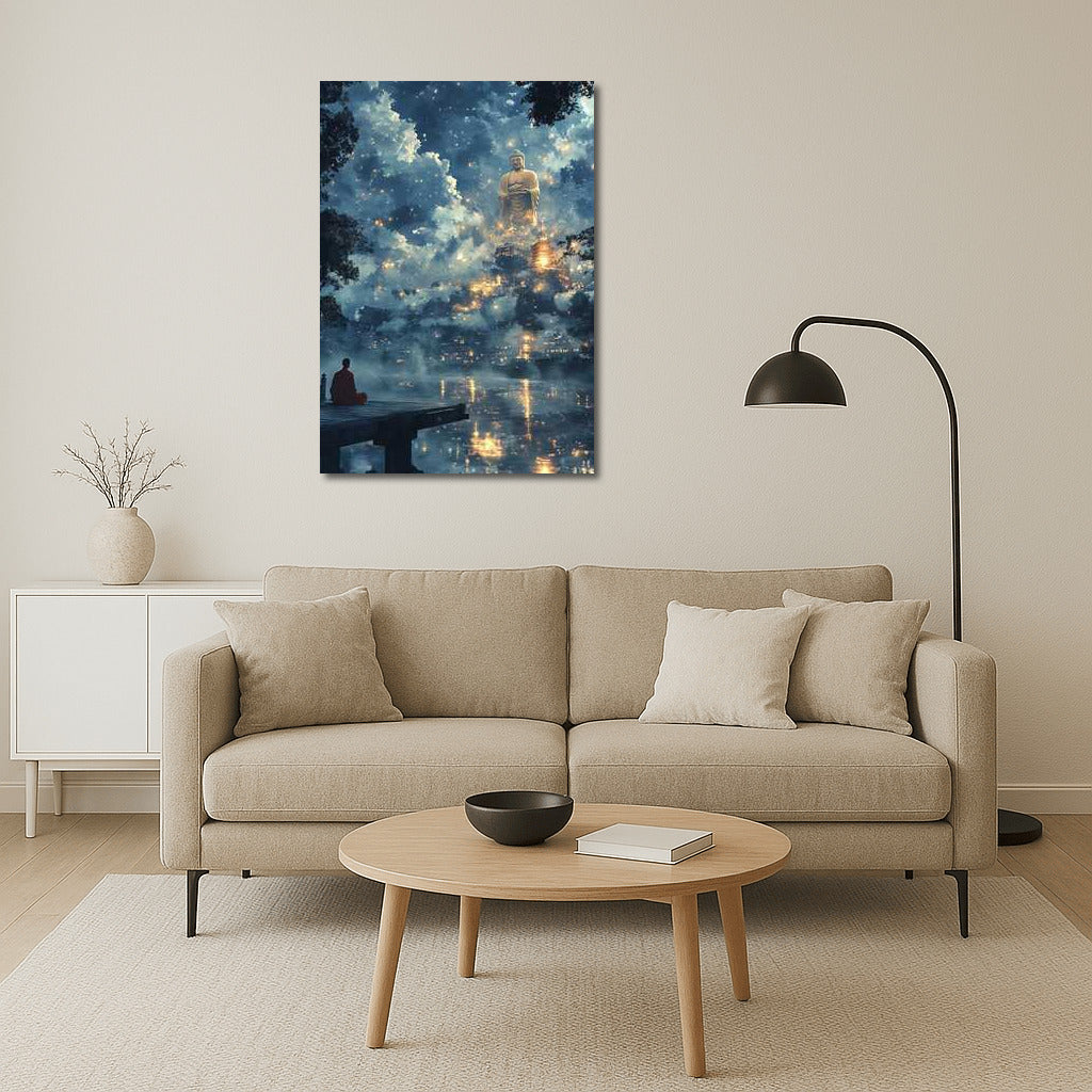 The Majesty of Buddha in the Clouds: Buddha Statue Wall Art