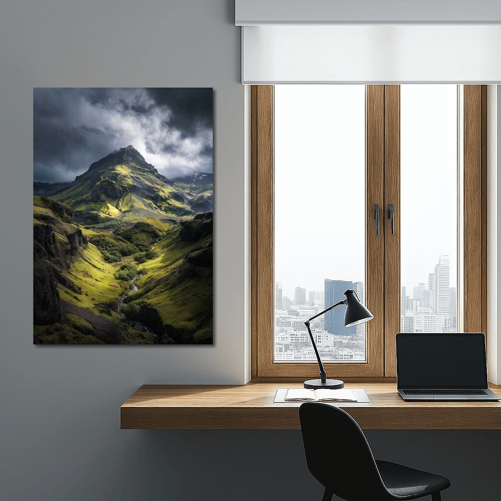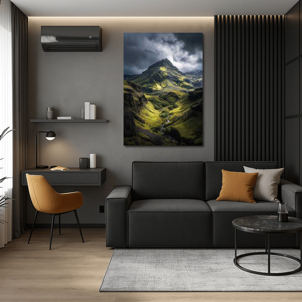 Poster with a view of the majestic Icelandic landscapes. Wild nature and the power of the mountains in your wall art. See more from the collection: Country Art
