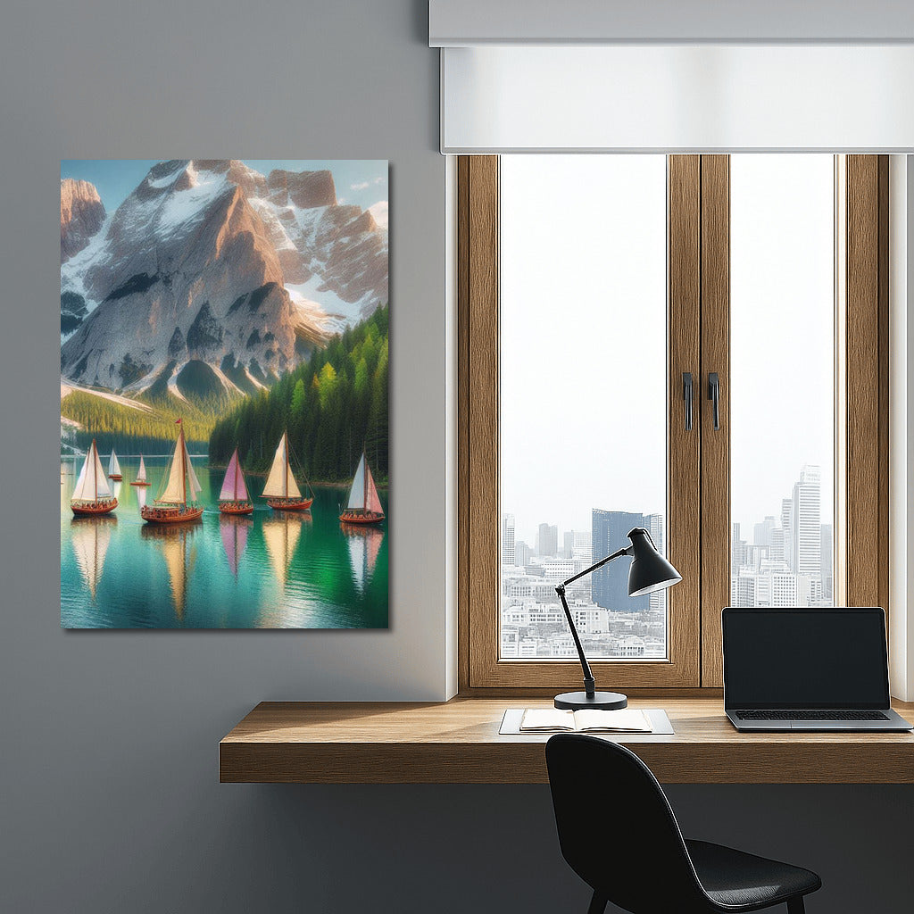 Immerse yourself in a world of incredible beauty with the Schooners Mountain Landscape 3 poster - the sails and the grandeur of the mountains will take your breath away. See more from the collection: Ships Art