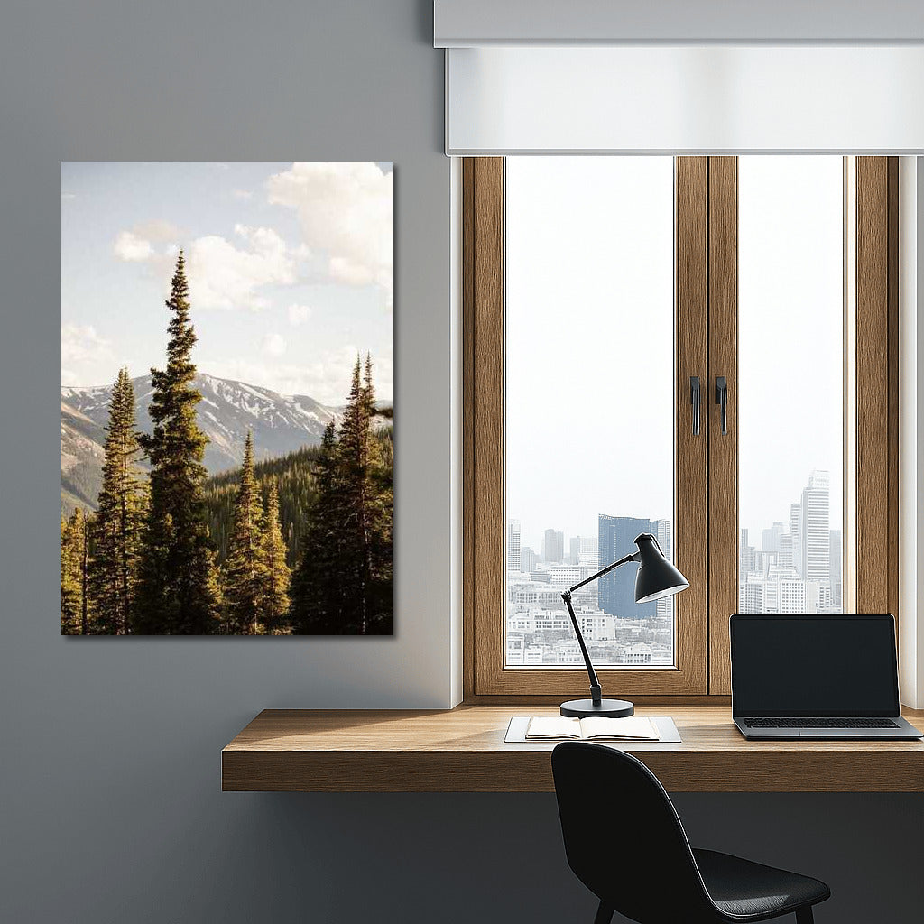 The breathtaking Colorado landscape with majestic mountains and pine trees is the perfect poster for nature lovers and adventurers. See more from the collection: Country Art