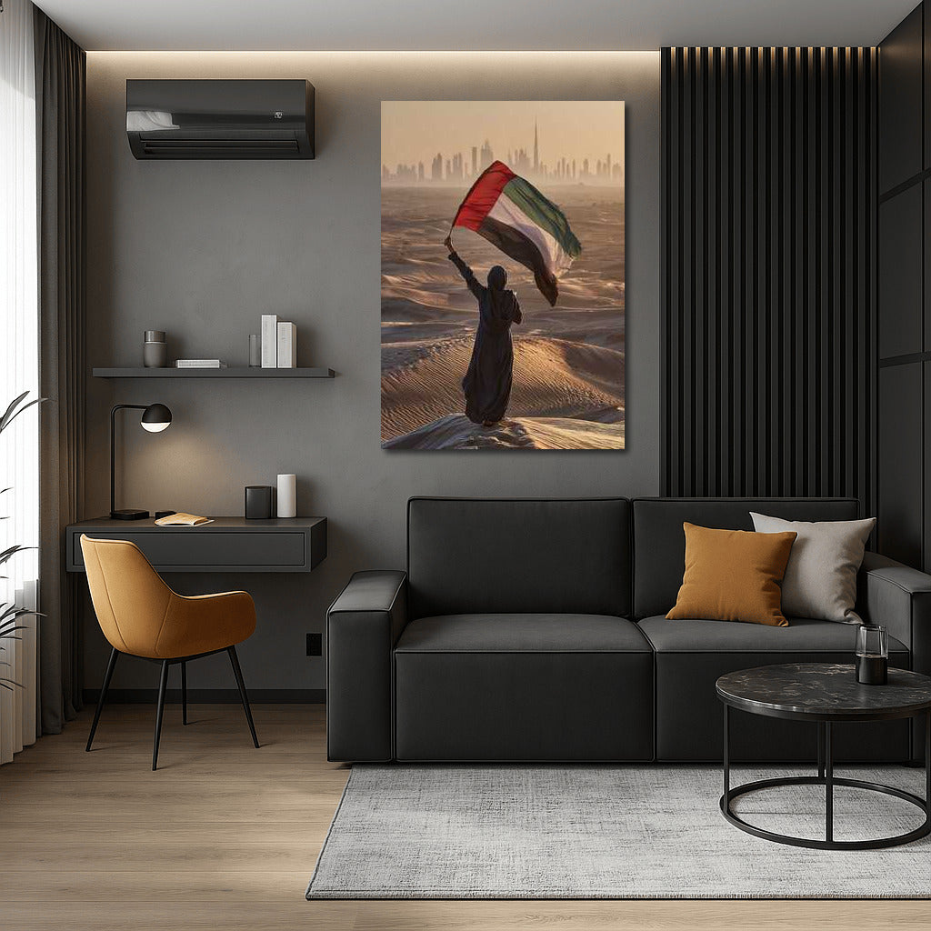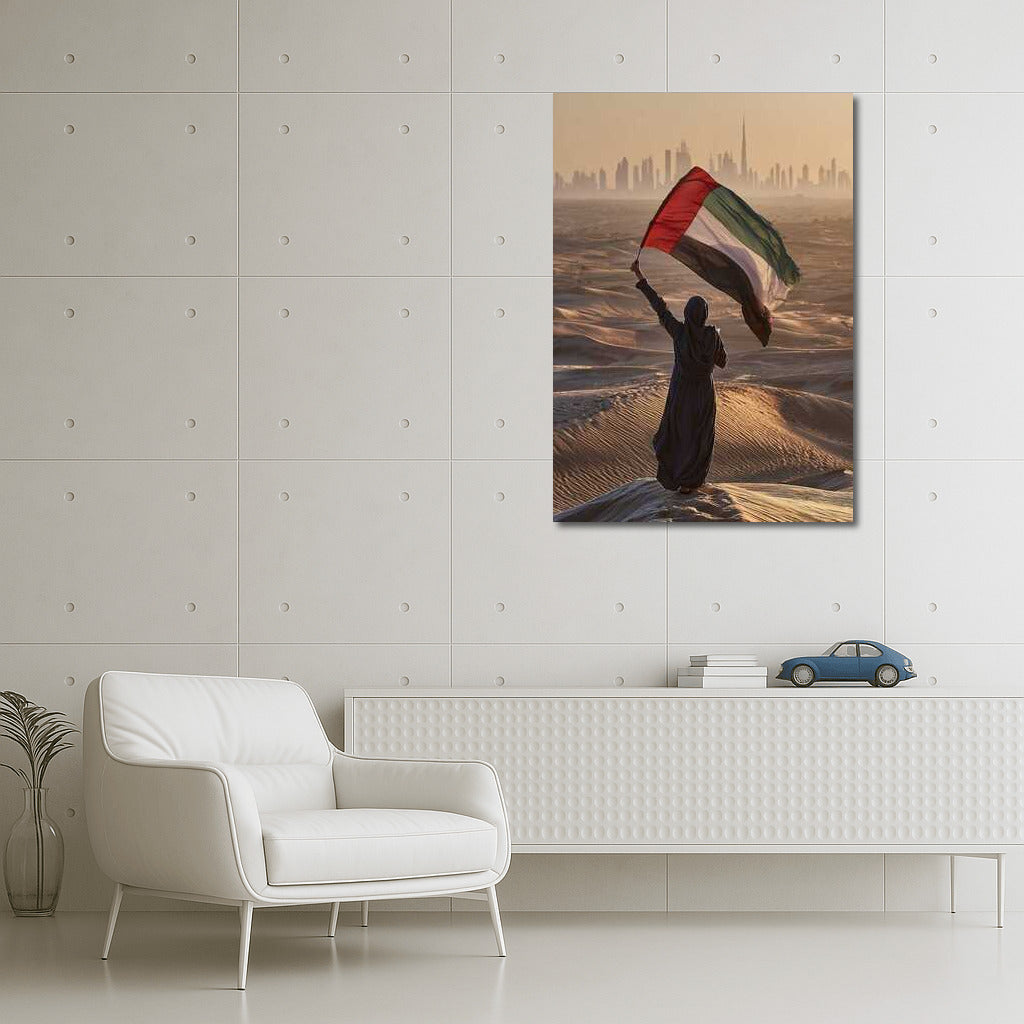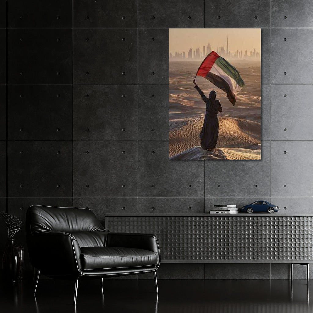A poster with a view of the majestic dunes of the UAE, reflecting the pride and greatness of the country. Wall art with character. See more from the collection: Country Art