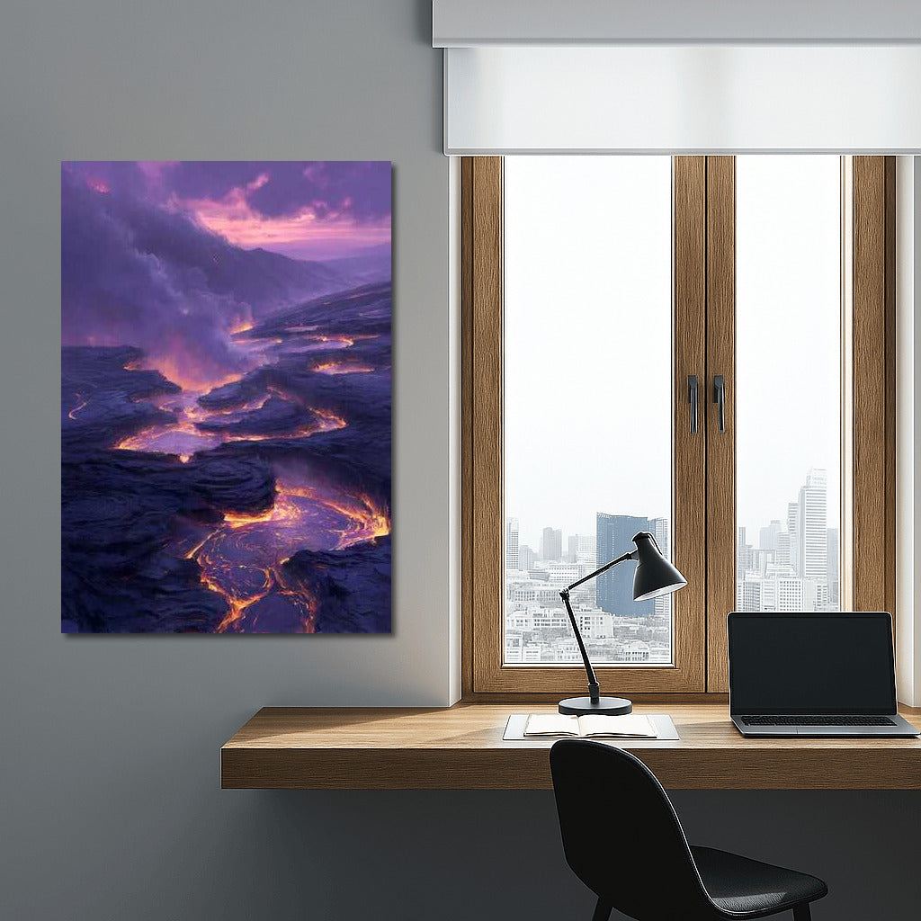 Immerse yourself in the magic of nature: a mesmerizing poster of lava tongues flowing gracefully in a volcanic landscape. Wall art. See more from the collection: Nature & Landscapes Art