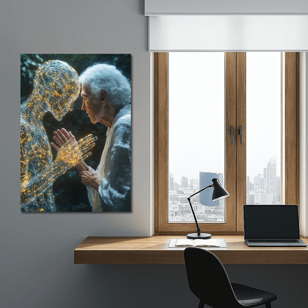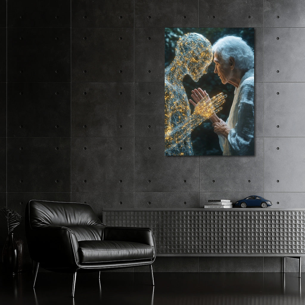 The art of meeting times: shining digital silhouette and wisdom of life. Will decorate your interior with a special mood. See more from the collection: Mixed Wall Art