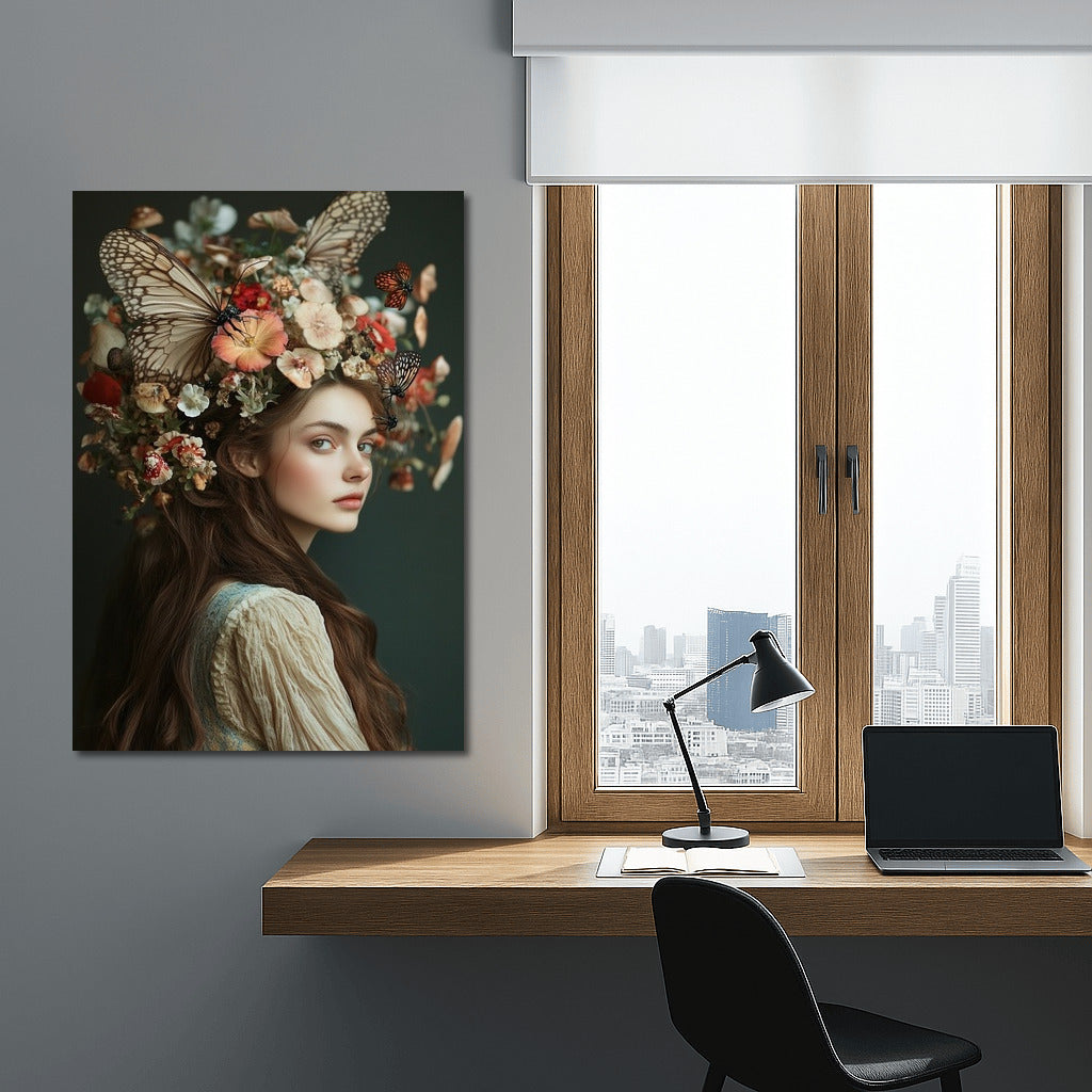 Dive into a world of fantasy with this painting: art where nature and dream are intertwined in a portrait, bringing the walls to life. See more from the collection: Wall Art with Women