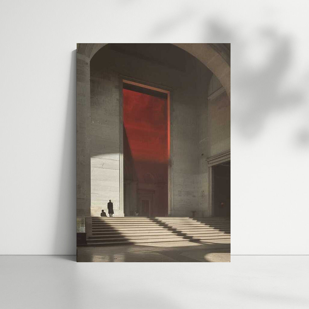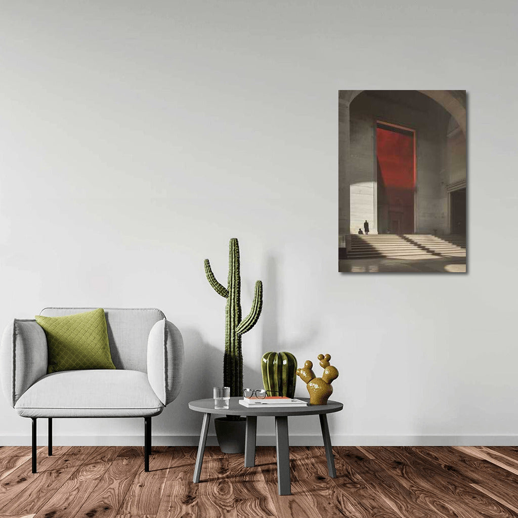 The Mysterious Red Door: Isometry of Surrealism Wall Art