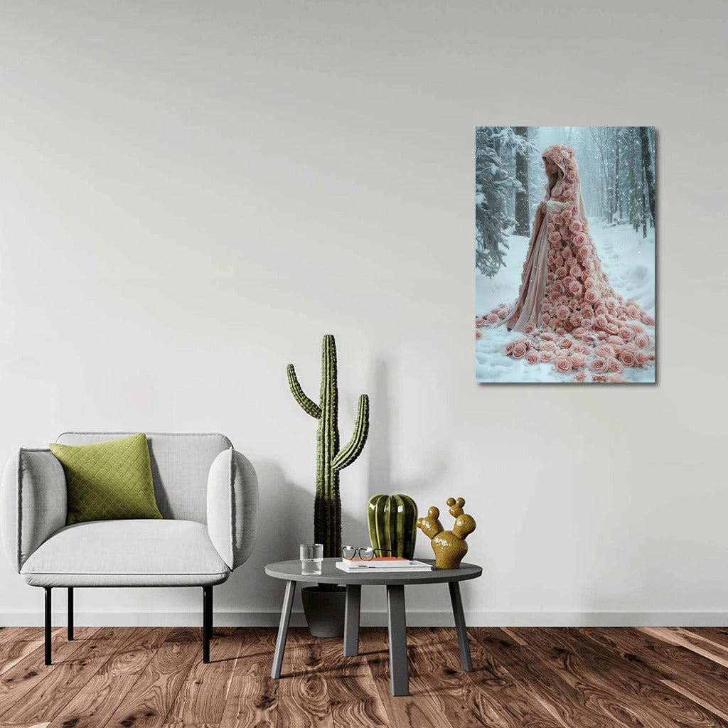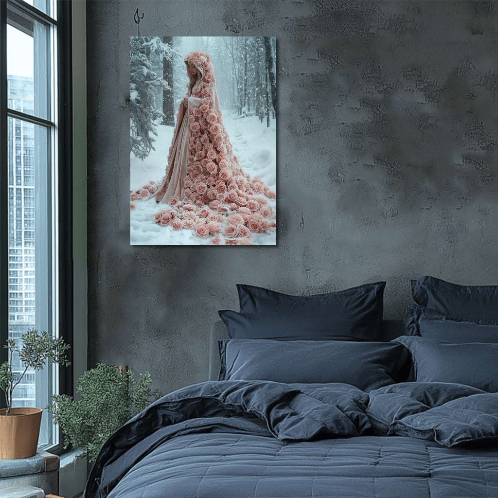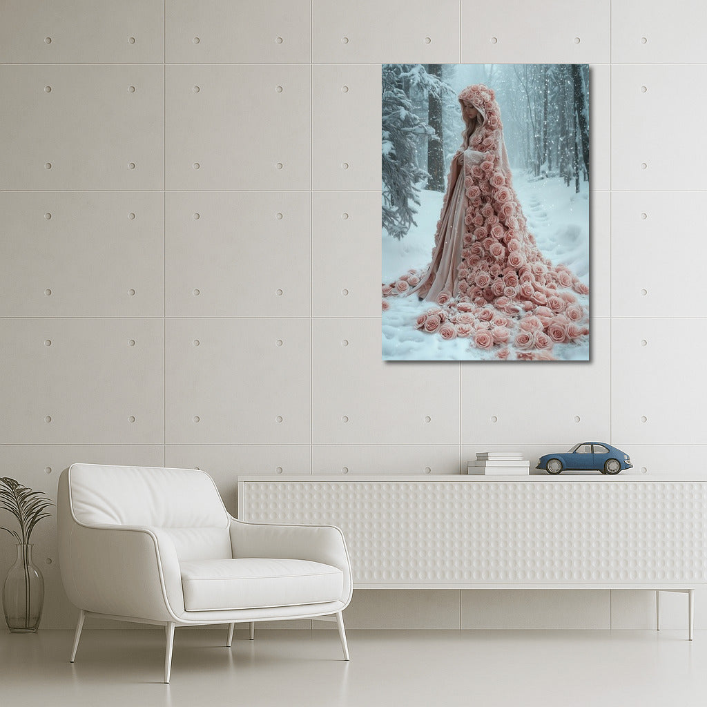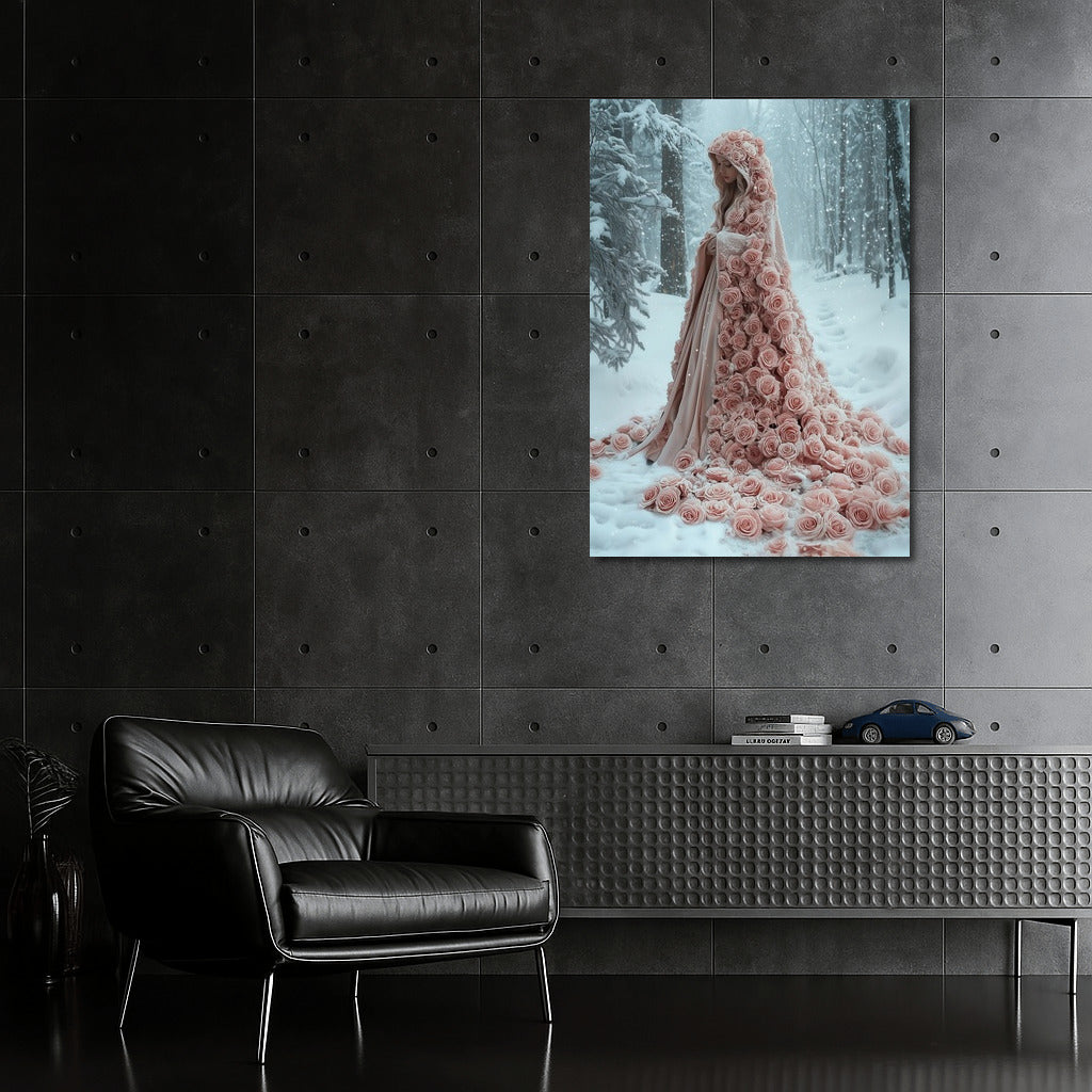 Winter fairy tale: a poster with a mysterious image in pink roses wrapped in snow. Wall art for dreamers! See more from the collection: Mixed Wall Art