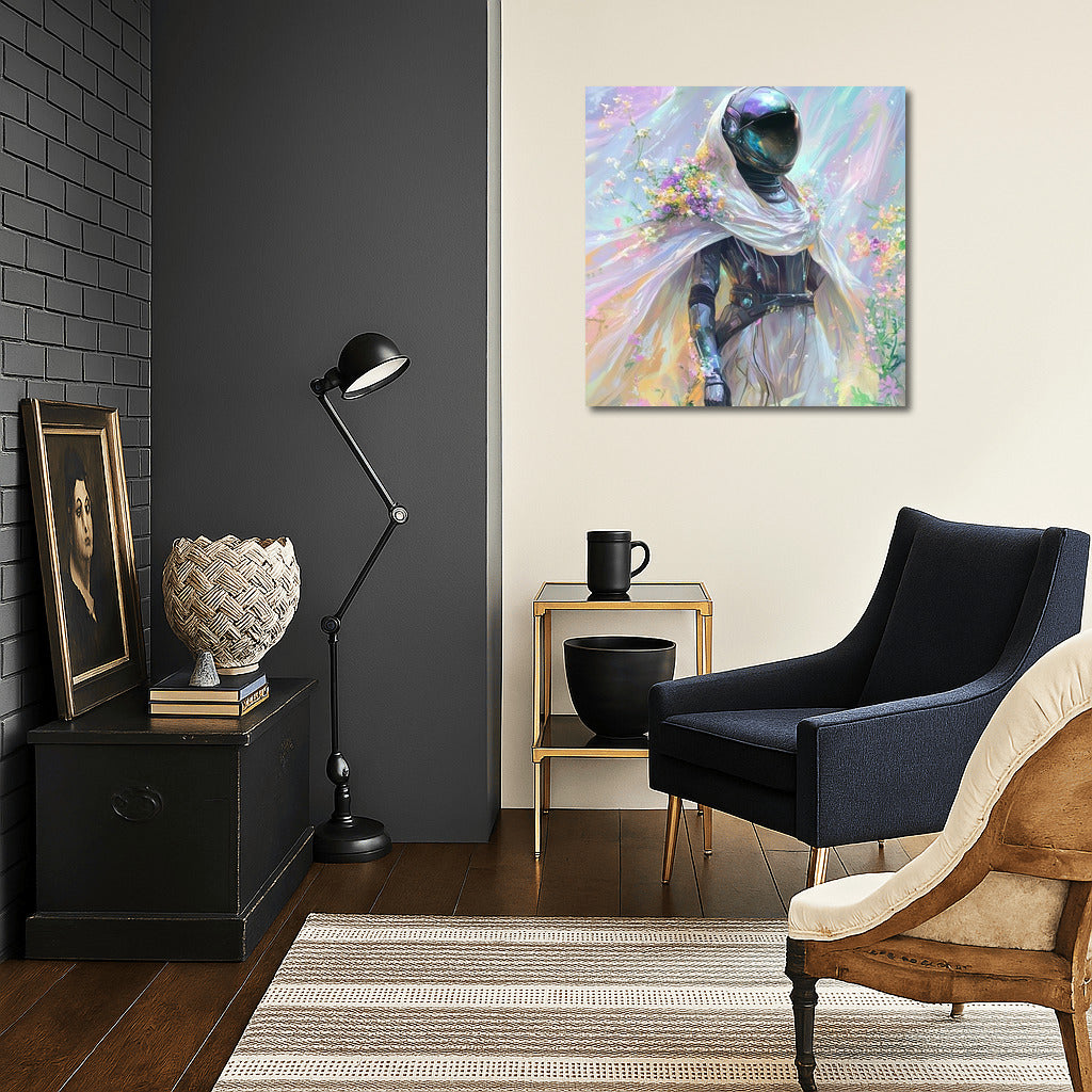 Poster: Space Mystery in Flowers. Wall art brings fantasy to life and transports you to a magical world. See more from the collection: Mixed Wall Art