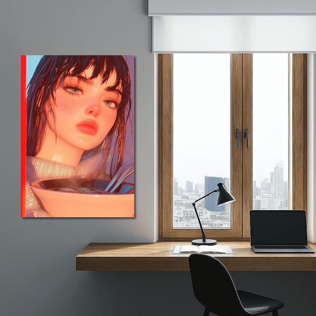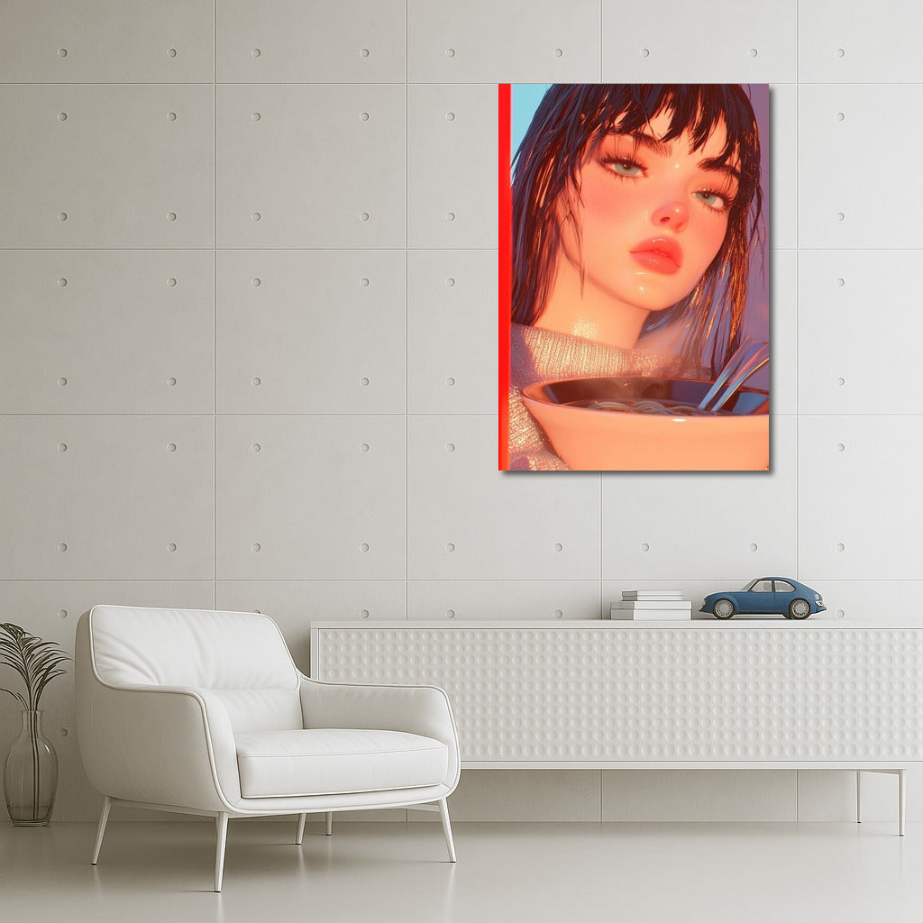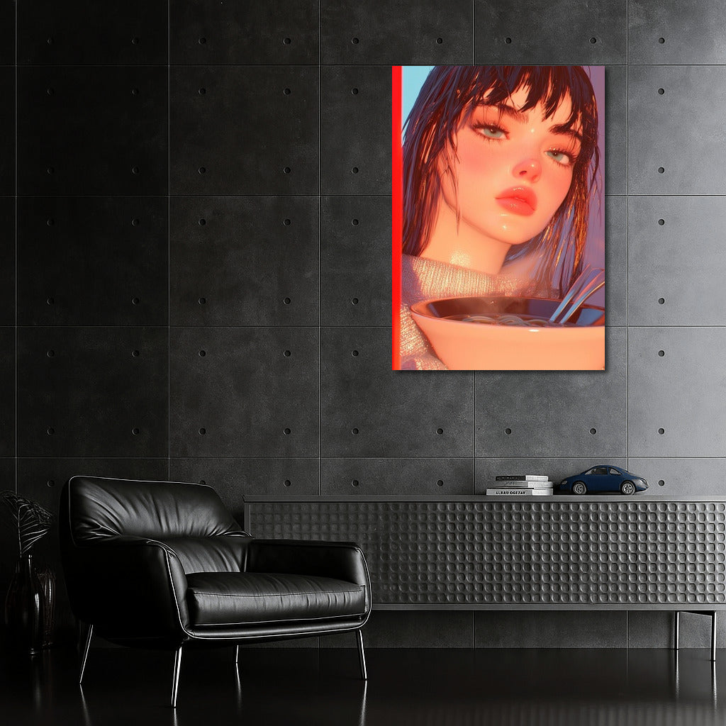 A vibrant poster featuring a mysterious figure and a steaming dish is wall art that fills the space with a dreamy atmosphere. See more from the collection: Anime & Manga genres Art