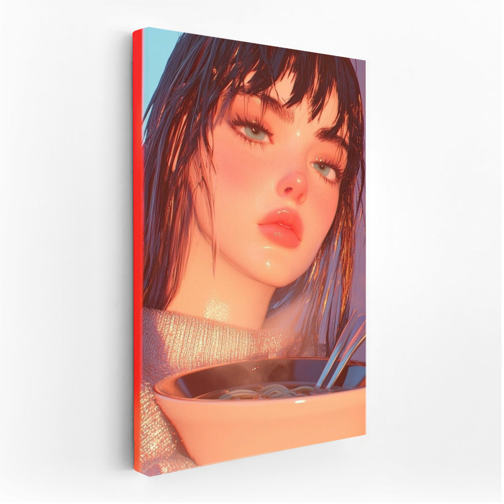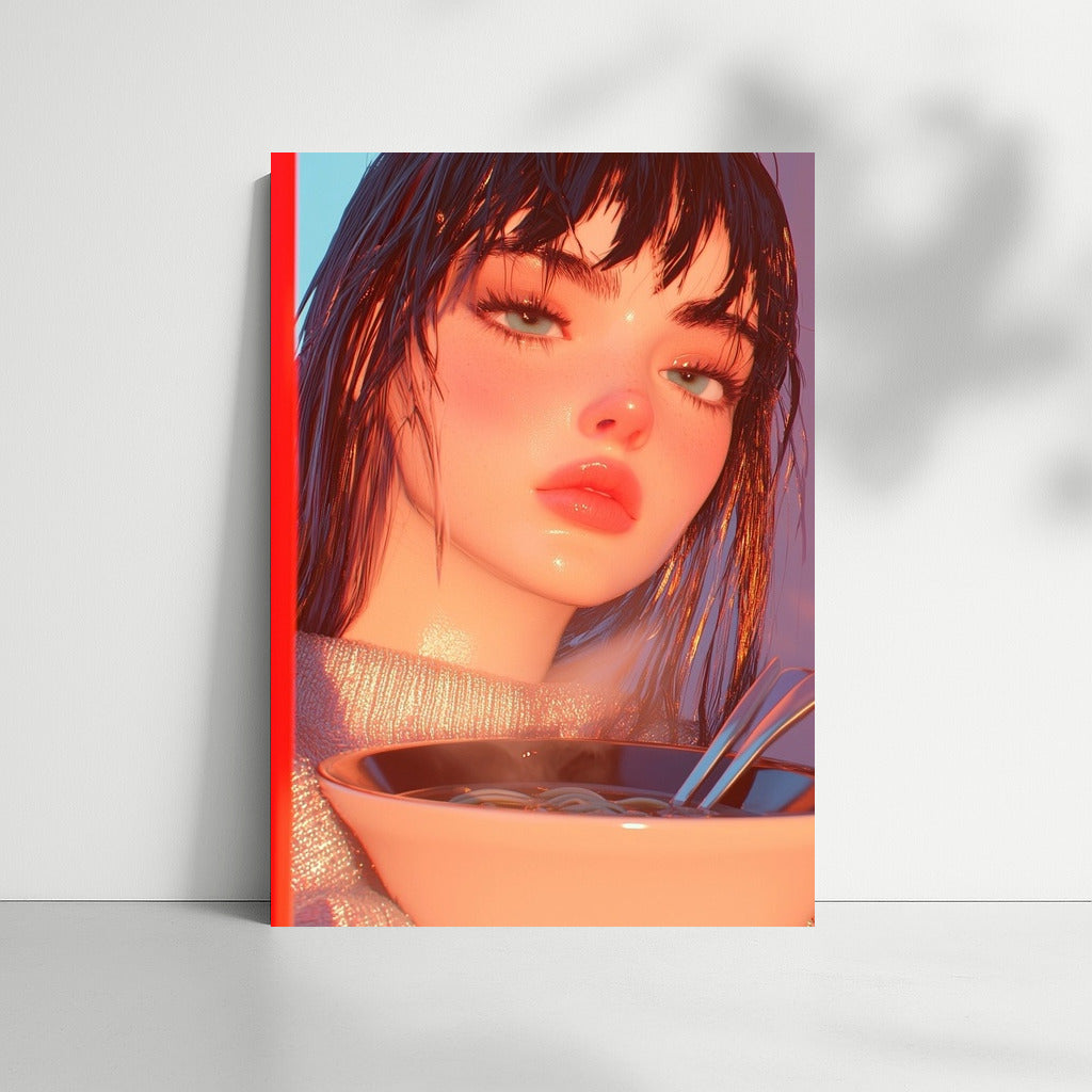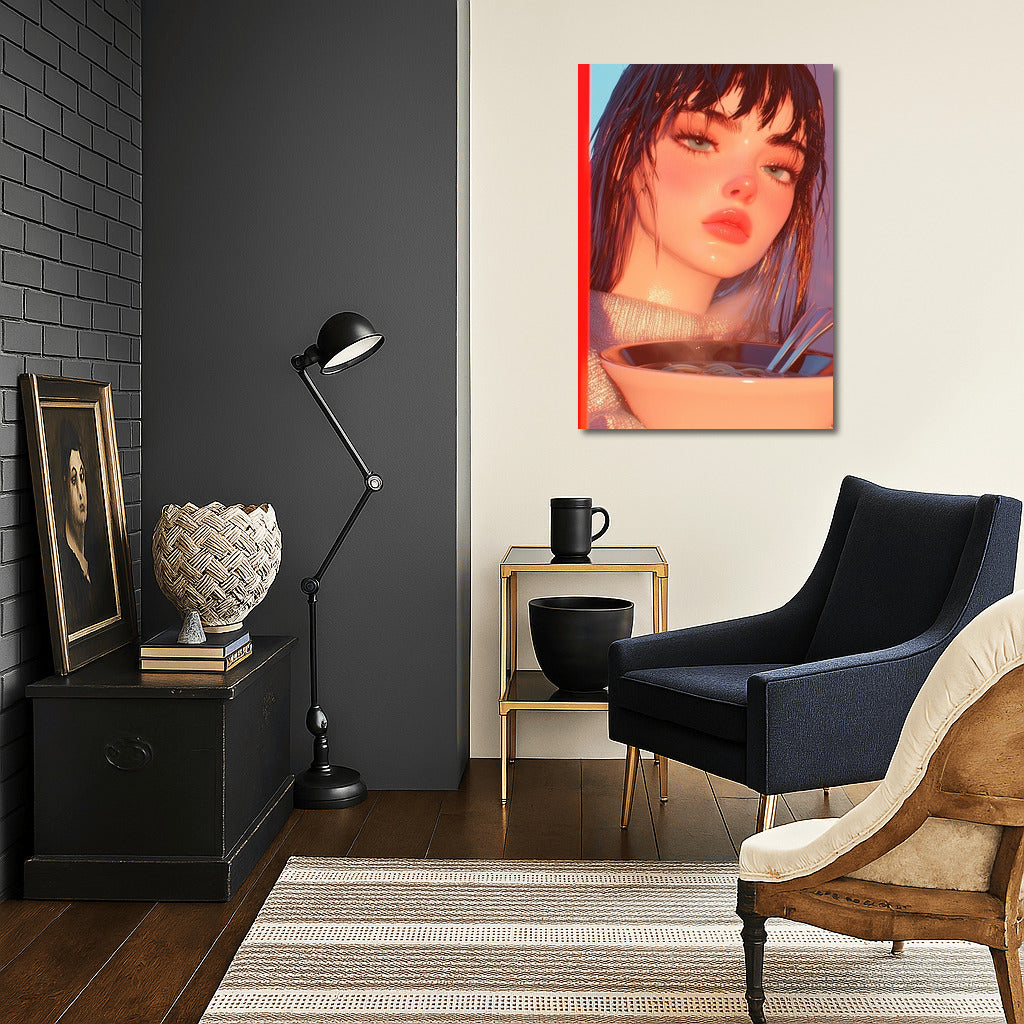 A vibrant poster featuring a mysterious figure and a steaming dish is wall art that fills the space with a dreamy atmosphere. See more from the collection: Anime & Manga genres Art