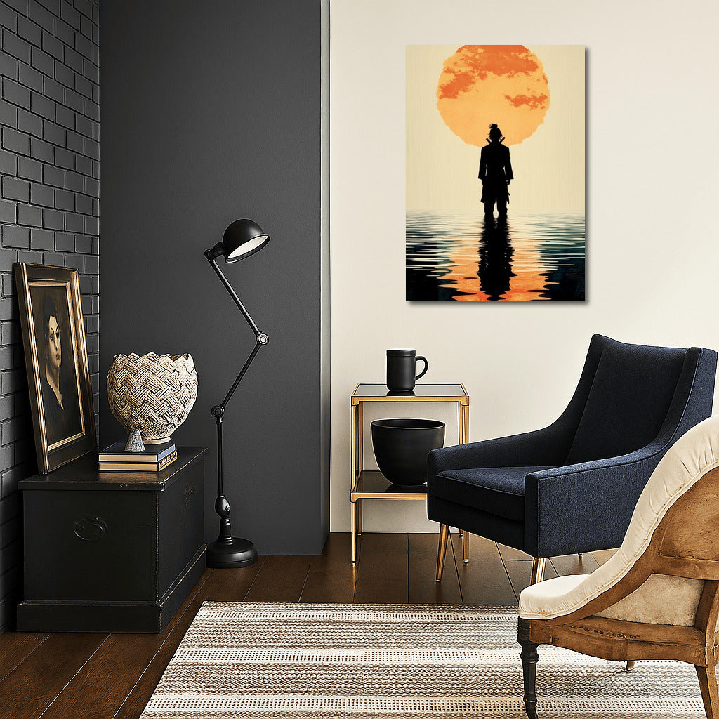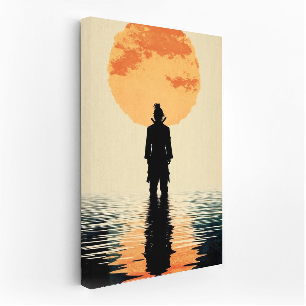 Silhouette in front of the rising sun: mystery and grandeur. This poster will add depth and style to any space. See more from the collection: Samurai Art