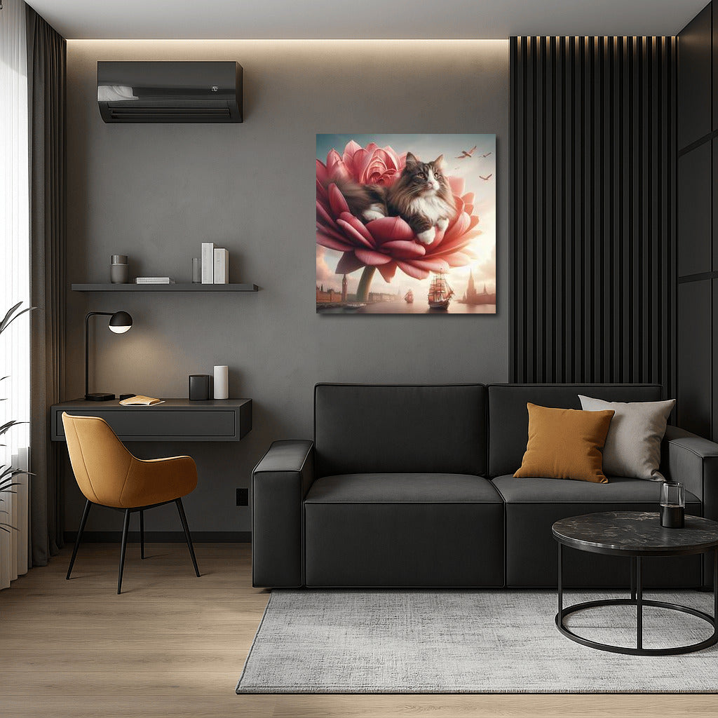 The Norwegian Forest Cat's Journey on the Flower Ship Wall Art