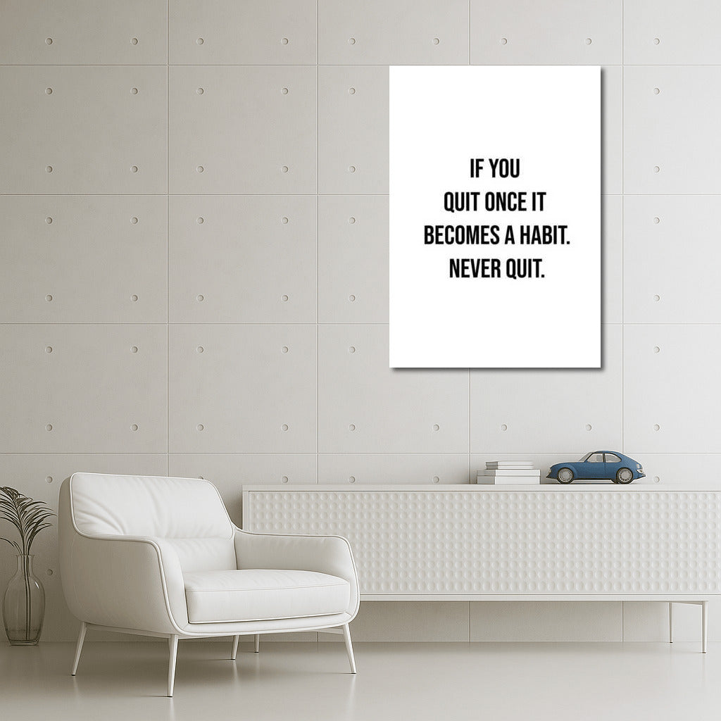Wall art with the inscription If you quit once it becomes a habit. Never quit. Inspiration and motivation in every day! See more from the collection: Inspirational & Motivational Quotes Art