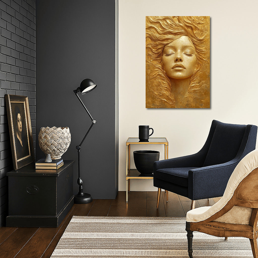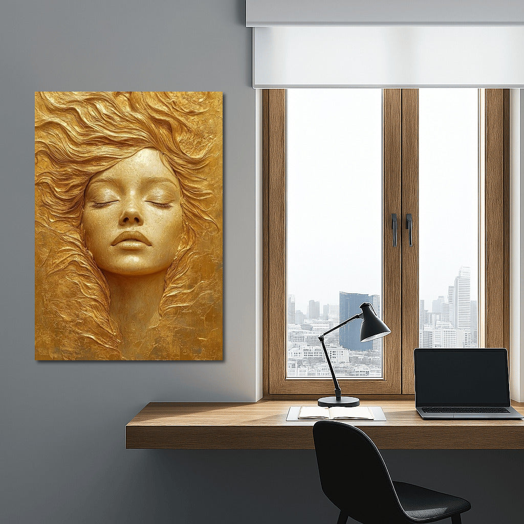 Golden breath of dreams: an expressive painting for your interior. Wall art that enlivens every moment. See more from the collection: Mixed Wall Art