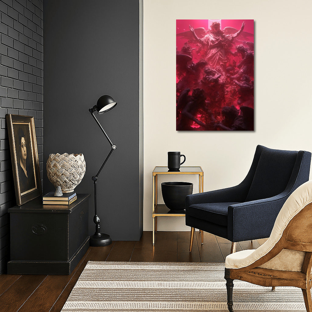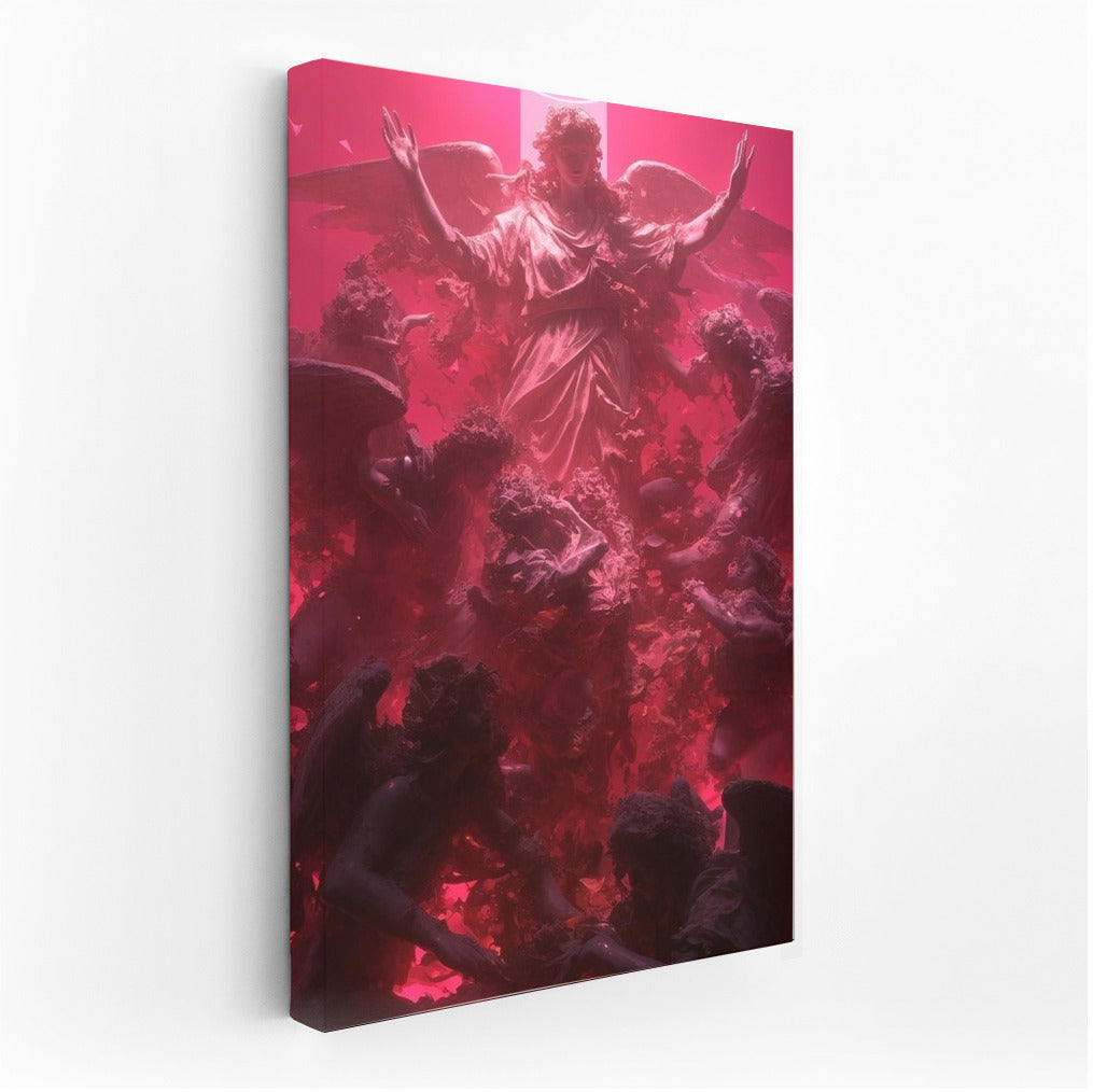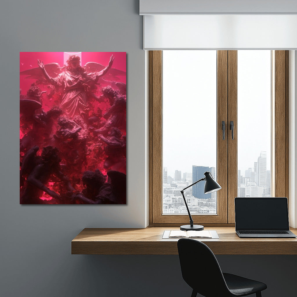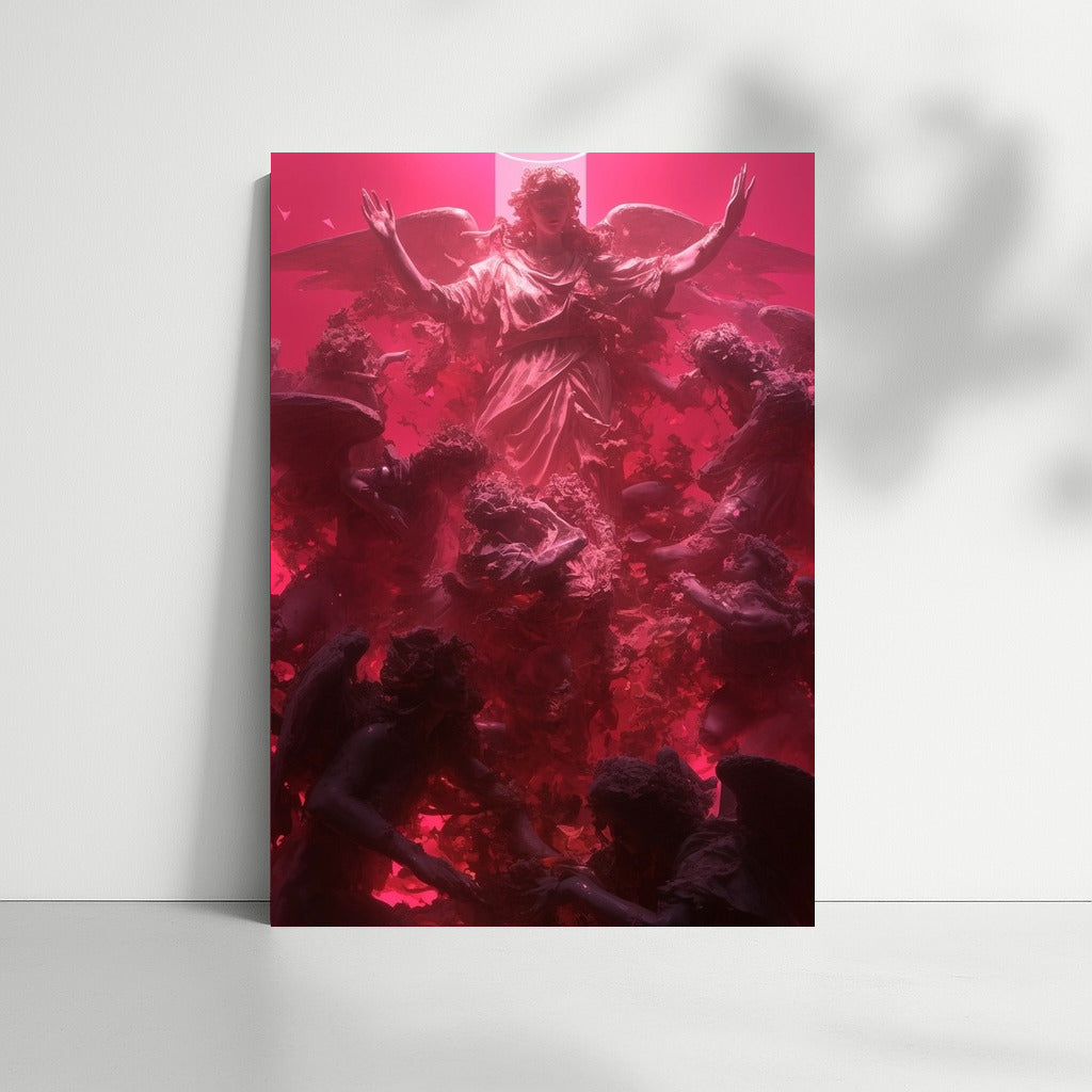 Immerse yourself in the mystical with this poster: angels and radiant light rise in a captivating, colorful symphony. Dream wall art. See more from the collection: Religion Art