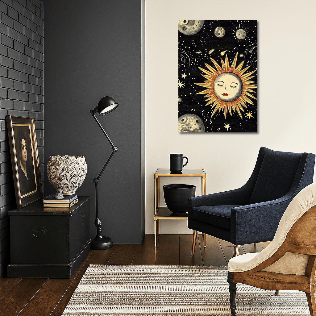 Space magic: the shining sun among the stars. This poster is the perfect wall art for dreamers! ✨ See more from the collection: Mixed Wall Art