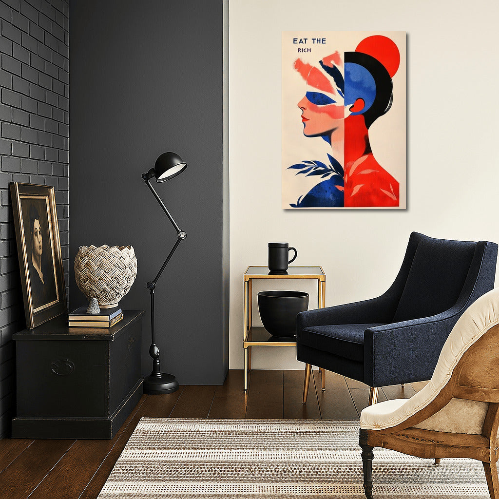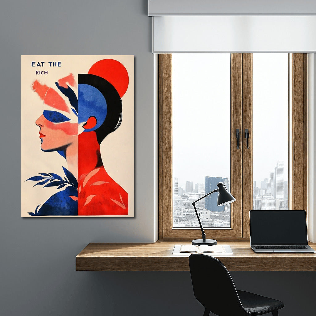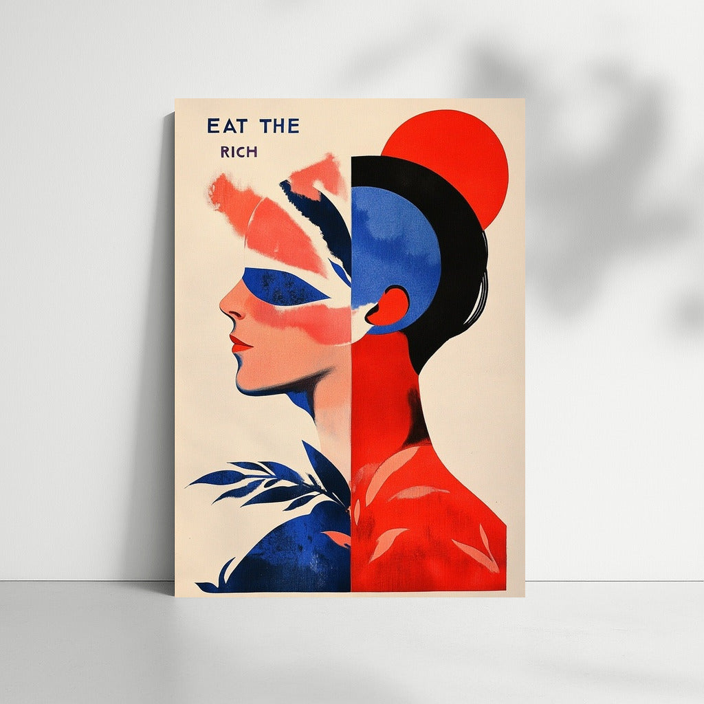 An expressive poster with a colorful stylization of a person. Wall art that challenges traditions and attracts attention. See more from the collection: Mixed Wall Art